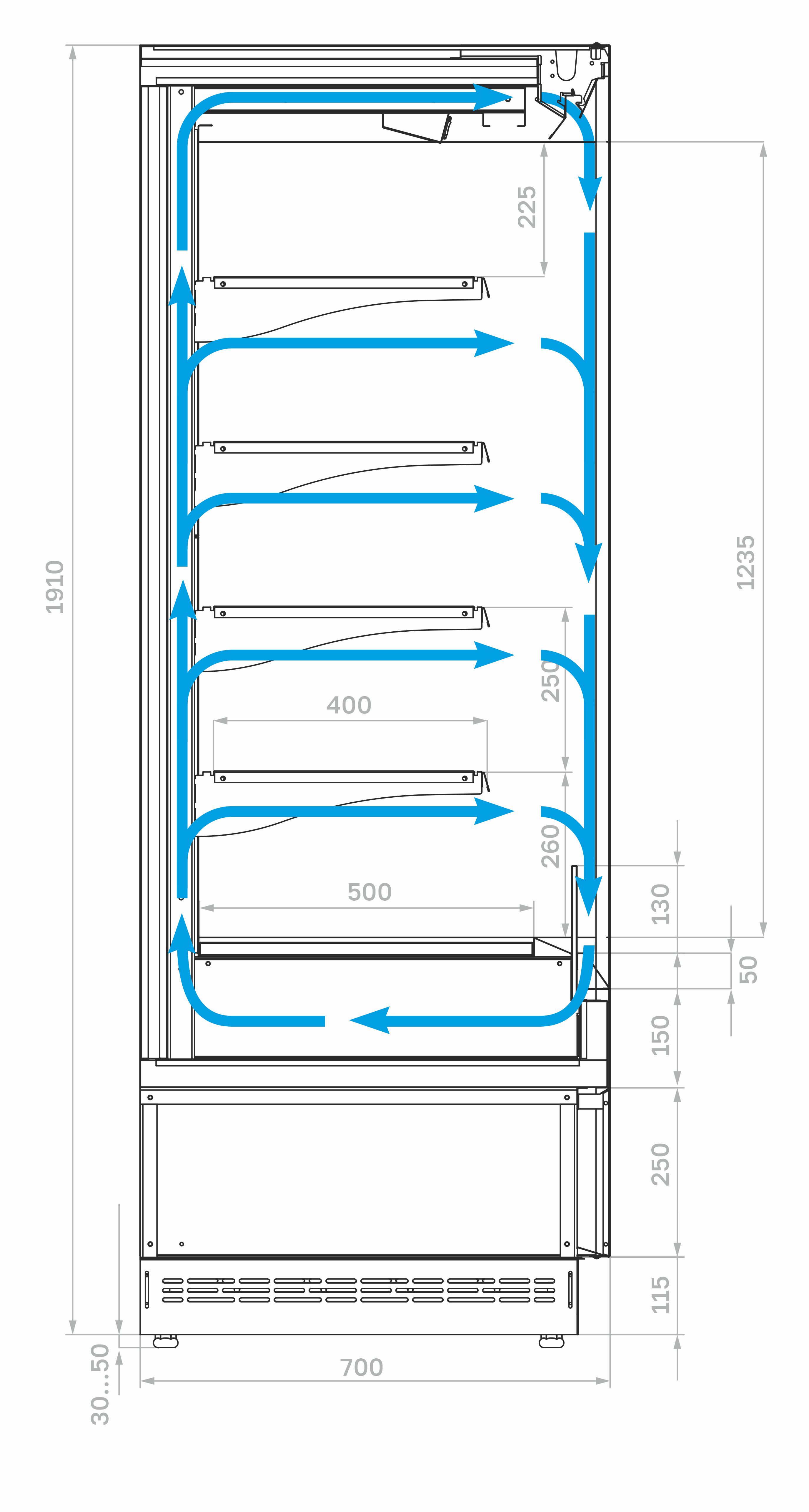 Carboma FC20-07 VM 0,7-2 (версия 2.0) (цвет по схеме) — это функциональное и надёжное решение для предприятий общественного питания и торговли. Она обеспечивает стабильное динамическое охлаждение, экономичное энергопотребление и удобную демонстрацию продукции за счёт продуманной конструкции с четырьмя регулируемыми полками.