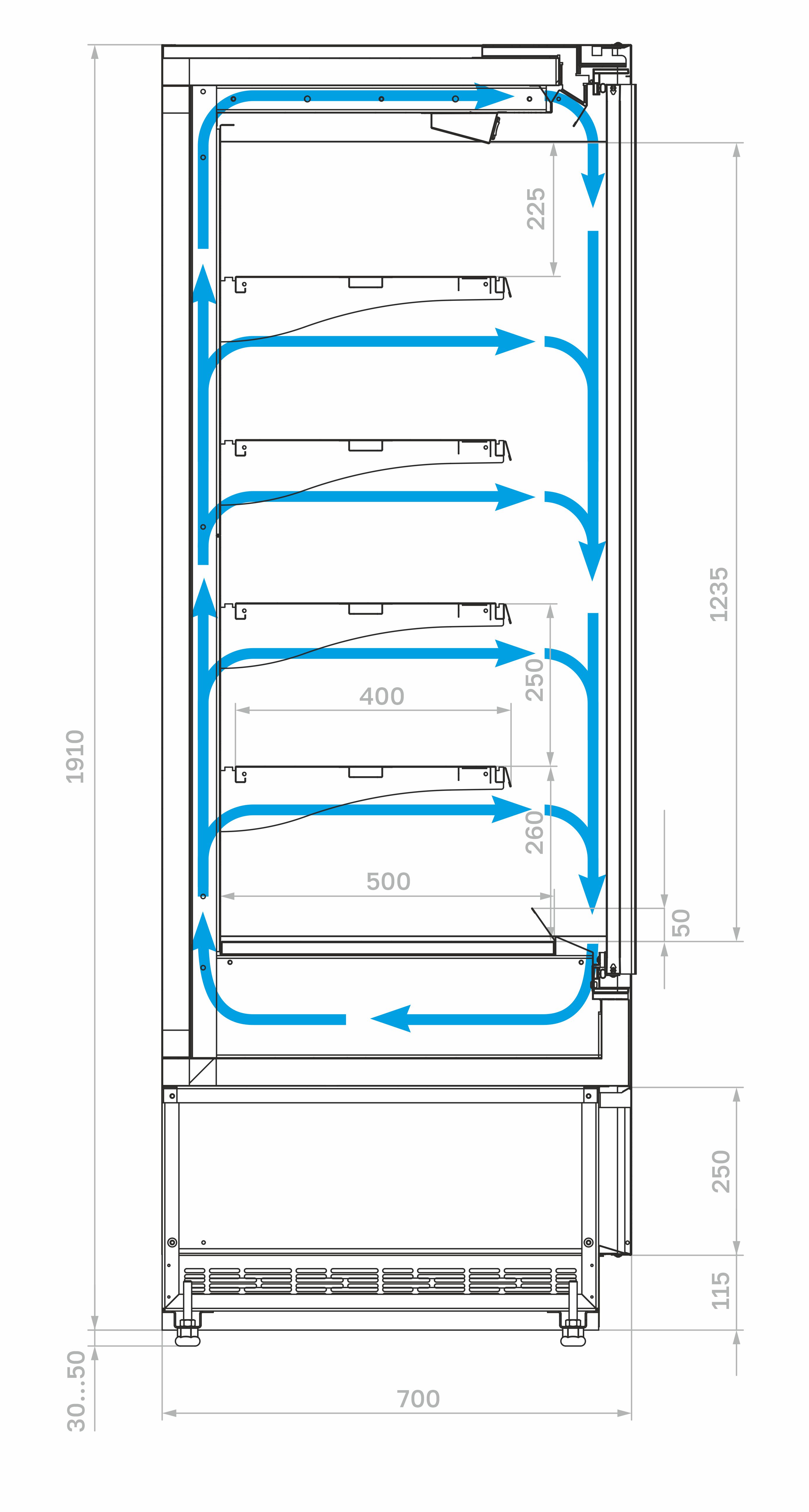 • Боковины – металлические с зеркальным покрытием для улучшения обзора продукции и визуального расширения пространства;