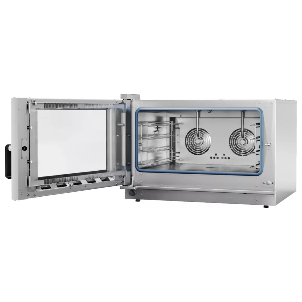 Каталог оборудования Тепловое оборудование для общепитаКонвекционные печиКонвекционная печь Abat КЭП‑4ПМ-01 Конвекционная печь Abat КЭП‑4ПМ-01 Код товара: 012-711 Поделиться: WhatsAppTelegram СравнитьДобавить в КПВ избранное 0 236 500 ₽ В корзину 0 шт В наличии на 2 складахДоступно для заказа 8 шт.Наличие на складахВолжскг.Волжск, Йошкар-Олинское шоссе, д.20В наличии 5 шт.Новосибирскг.Новосибирск, Толмачевское шоссе, д.27 (склады №56)В наличии 3 шт.Самовывоз сегодня бесплатно Расчет стоимости доставкиОткудаВолжскНовосибирскКудаМоскваСанкт-ПетербургАстраханьБарнаулБелгородБрянскВладивостокВолгоградВоронежЕкатеринбургИвановоИжевскИркутскКазаньКалининградКемеровоКировКраснодарКрасноярскКурскЛипецкМагнитогорскМахачкалаНабережные ЧелныНижний НовгородНижний ТагилНовокузнецкНовосибирскОмскОренбургПензаПермьПятигорскРостов-на-ДонуРязаньСамараСаратовСимферопольСтавропольТверьТольяттиТомскТулаТюменьУлан-УдэУльяновскУфаХабаровскЧебоксарыЧелябинскЯрославльРассчитатьРасчет стоимости доставки указан приблизительный, более точный расчет Вам может осуществить сотрудник транспортной компании. Взять в кредит Купить в лизинг Получить консультацию в WhatsApp Описание Характеристики Отзывы 0 Инструкции 3 Конвекционная печь Abat КЭП-4ПМ-01 предназначена для приготовления большого ассортимента блюд, включая выпечку кондитерских и хлебобулочных изделий, а также для разогрева готовой продукции и размораживания мяса, рыбы или полуфабрикатов. Благодаря мощным реверсивным вентиляторам достигается равномерное распределение тепловых потоков по всей камере. Рекомендуется к использованию в качестве основного теплового оборудования на предприятиях общественного питания и торговли малого и среднего форматов или в качестве вспомогательного - в заведениях с большой проходимостью. Важно: Противни 600х400 мм не входят в комплект поставки и приобретаются отдельно Возможно подключение как к однофазной (220 В), так и к трёхфазной (380 В) электрической сети (в комплекте штатный шнур питания КГН 5х2,5 мм² длиной 3 м) Оборудование необходимо устанавливать на подставку или расстоечный шкаф; рекомендуемая подставка: ПК-6-6/4, расстоечные шкафы: ШРТ-12, ШРТ-12Э, ШРТ-12М или ШРТ-12ЭМ (приобретаются отдельно) Совместимая модель вытяжного зонта: ЗВВ-4-6/4ПМ (приобретается отдельно) Настройки и функции: Электронная панель управления 110 пользовательских программ (до 4-х этапов в каждой) Регулировка уровня влажности от 0 до 100% Кнопка ручного впрыска влаги Встроенный таймер (время установки - от 1 минуты до 9 часов 59 минут) Охлаждение рабочей камеры Автоматическая мойка с помощью таблетированных моющих средств (в комплект поставки входит 1 моющая таблетка 2 в 1 с ополаскивающим эффектом Abat PW&R tabs для пробной мойки, а также специальный поддон для укладки таблеток) Ключевые особенности: Корпус и камера из нержавеющей стали Инжекционное пароувлажнение 4 скорости вращения вентиляторов Аварийное выключение при достижении 320 °С Дверца с двойным жаропрочным стеклом с воздушной прослойкой обеспечивает улучшенную теплоизоляцию и существенно снижает риск получения ожогов при касании Возможность фиксации дверцы в открытом положении Ручка с механизмом байонет для плавного закрывания дверцы Встроенная LED-подсветка Скруглённые углы камеры предотвращают скапливание грязи по краям ст