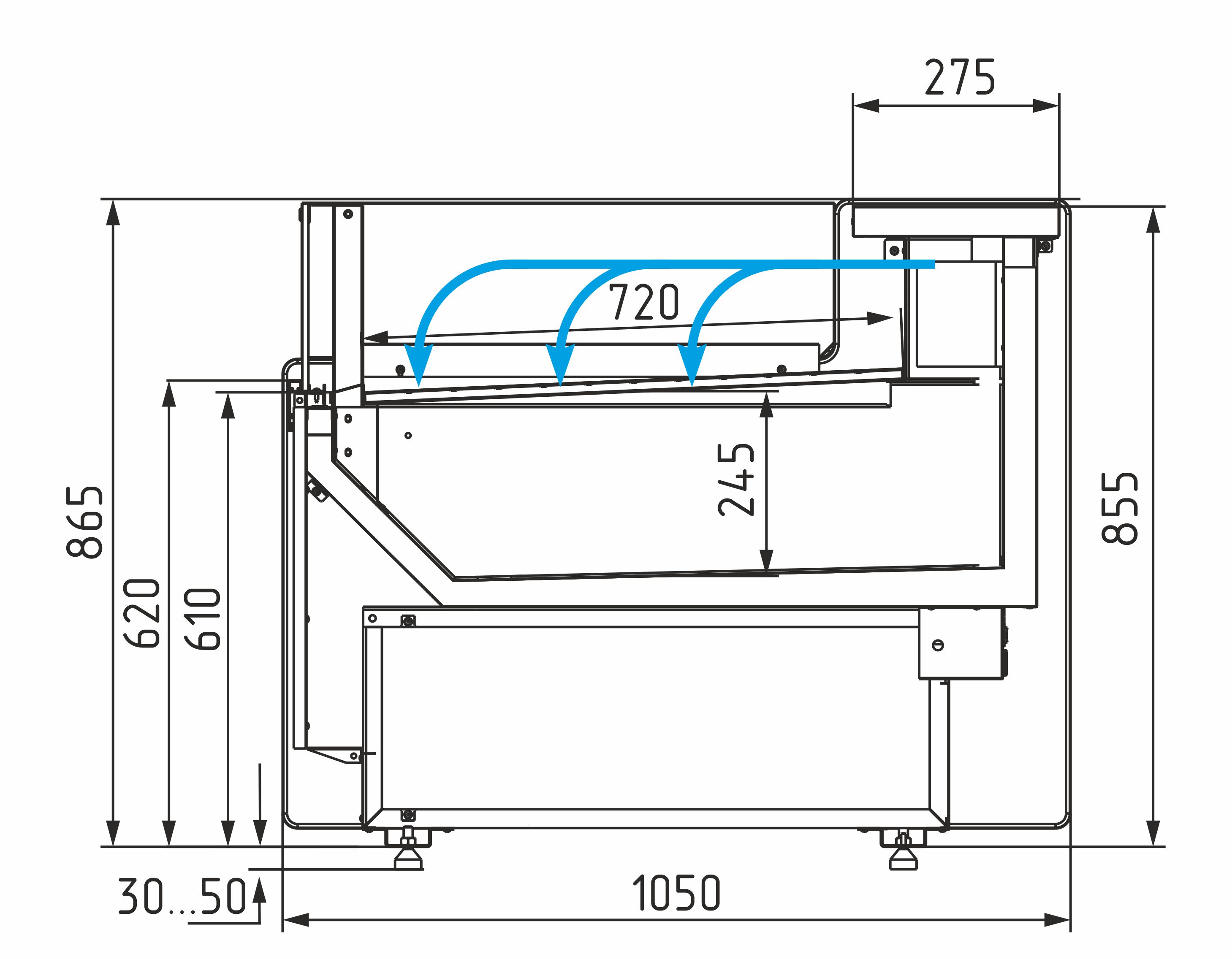 • Открытая витрина — обеспечивает лёгкий доступ к продуктам без фронтального стекла.