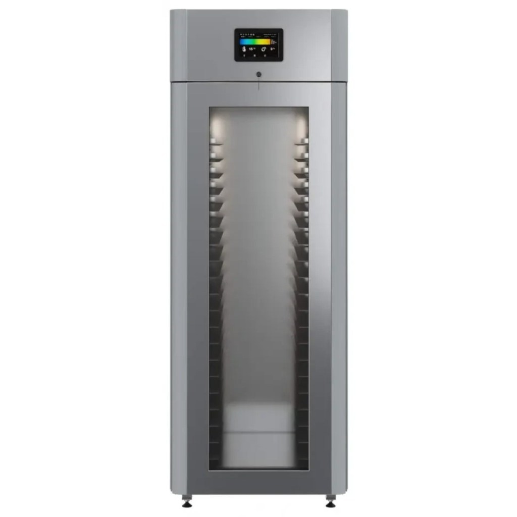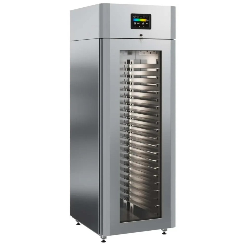 Каталог оборудования Холодильное оборудованиеШкафы холодильныеСпециализированные холодильные шкафыШкаф холодильный для хлебопекарных производств Polair CS107-Bakery Br со стеклом (Тип 2) Шкаф холодильный для хлебопекарных производств Polair CS107-Bakery Br со стеклом (Тип 2) Код товара: 062-623 Поделиться: WhatsAppTelegram СравнитьДобавить в КПВ избранное 0 419 900 ₽ В корзину 0 шт Под заказСамовывоз сегодня бесплатно Взять в кредит Купить в лизинг Получить консультацию в WhatsApp Описание Характеристики Отзывы 0 Инструкции 5 Шкаф холодильный для хлебопекарных производств Polair CS107-Bakery Br со стеклом (Тип 2) предназначен для создания оптимальных условий хранения и расстойки заготовок из теста на предприятиях общественного питания и торговли. Корпус цельнозаливной, выполнен из нержавеющей стали, дверь — стеклопакет. Оборудование стабильно работает при температуре окружающей среды до +40 °C. В комплект входят 20 пар направляющих размером 400×600 мм. Особенности: Многофункциональные режимы: охлаждение тестовых заготовок, замедление ферментации, хранение, регенерация, брожение и расстойка Динамическое охлаждение с мягким обдувом без заветривания и автоматическая оттайка с системой испарения конденсата Панель управления с 7" дисплеем: контроль температуры, влажности (регулируется от 60 до 95 %), скорости вентилятора и времени, возможность создания и сохранения собственных программ Встроенный ультразвуковой увлажнитель (требуется подключение к системе водоочистки и канализации) Эргономичная конструкция: верхнее расположение агрегата, распашная дверь со стеклопакетом и механизмом самозакрывания, педаль для удобного открытия, съёмные направляющие и легко заменяемый уплотнитель с магнитной вставкой Простота ухода: штампованное углубление в дне корпуса для сбора загрязнений Экологичный хладагент R290 Энергоэффективность: потребляемая мощность — 0,55 кВт (охлаждение), 0,9 кВт (нагрев) Толщина стенки корпуса — 43 мм Polair CS107-Bakery Br со стеклом (Тип 2) — современный шкаф отложенной расстойки, обеспечивающий полный контроль и гибкость при работе с тестовыми заготовками. Благодаря многофункциональным режимам, точной настройке параметров и продуманной конструкции, он становится надёжным решением для пекарен и кондитерских, стремящихся к высокому качеству продукции и удобству в эксплуатации.Изображение товара, представленного на фото, может отличаться от его фактического вида. Показать все Габаритные размеры697×1005×1960 ммДиапазон рабочей температурыот -10 до +40 °CДлина697 ммШирина1005 ммВысота1960 ммОбъём700 лКол-во дверей1 Тип двериСтеклянная Уровень влажностиот 60 до 95 %Направляющие под EN 40*6020 Расстояние между направляющими60 ммХолодильный агрегатВстроенный Тип оттайкиАвтоматическая Тип охлажденияДинамический ПодсветкаЕсть ХладагентR290 Вес нетто180 кгВес брутто205 кгБрендPolairВсе специализированные холодильные шкафы Из нержавейки Оставить отзыв Еще никто не оставил отзыв на этот товар Схема POLAIR CS107 Bakery Br.jpgИнструкция на POLAIR CS107 Bakery Br.pdfБрошюра на хлебопекарное оборудование POLAIR.pdfДекларация о соответствии.pdfСертификат соответствия.pdf Похожие товары Перейти в каталог Под заказ 389 300 ₽ Шкаф холодильный для вызревания мяса Polair CS107 Meat черный, со стеклом (Тип 1) Под заказ 405 450 ₽ Шкаф холодильный для хлебопекарных производств Polair CS107 Bakery Br черный, со стеклом (Тип 1) Под заказ 207 942 ₽ Шкаф холоди
