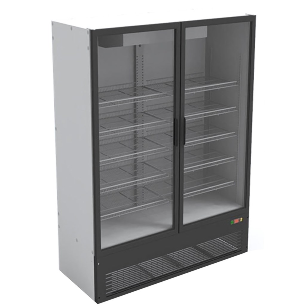 Две распашные стеклянные двери обеспечивают наглядную выкладку продукции и удобный контроль наличия товаров.