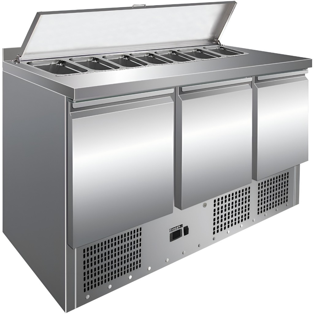 Cooleq S903-7GN 1/3 — надёжный и функциональный холодильный стол для профессиональной кухни, обеспечивающий эффективное хранение и подготовку салатов и других блюд, сочетая удобство, долговечность и рациональное использование пространства.