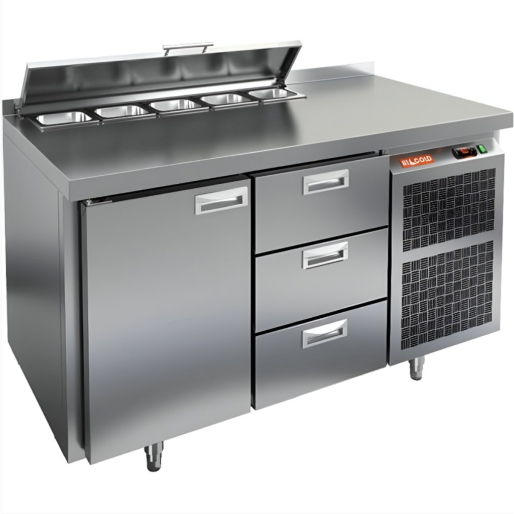 Каталог оборудования Холодильное оборудованиеСтолы охлаждаемыеСтолы холодильные для салатовСтол холодильный для салатов HiCold SL1-13GN (1/3) с крышкой Стол холодильный для салатов HiCold SL1-13GN (1/3) с крышкой Код товара: 064-852 Поделиться: WhatsAppTelegram СравнитьДобавить в КПВ избранное 0 189 622 ₽ В корзину 0 шт Под заказСамовывоз сегодня бесплатно Взять в кредит Купить в лизинг Получить консультацию в WhatsApp Описание Характеристики Отзывы 0 Стол холодильный для салатов HiCold SL1-13GN (1/3) с крышкой предназначен для профессиональных кухонь в общепите и торговле. Он совмещает рабочую поверхность и охлаждаемый объем, что ускоряет процесс приготовления и хранение ингредиентов. Корпус и столешница выполнены из нержавеющей стали — прочной, устойчивой к коррозии и простой в уходе. Металлическая крышка защищает продукты от загрязнений и сохраняет их свежесть. Особенности модели: Электронная панель управления — точная регулировка и стабильный температурный режим. Салат-бар на 5 гастроемкостей глубиной до 100 мм — быстрый доступ к ингредиентам. 1 глухая дверь — для хранения продуктов и тары. 2 выдвижных ящика — удобное размещение мелких или часто используемых ингредиентов. Автоматические доводчики дверей с фиксацией — комфорт при загрузке/выгрузке. Магнитные уплотнители — легко заменяются, обеспечивают герметичность и энергосбережение. Открытая агрегатная часть — простое обслуживание и доступ к компрессору. Регулируемые по высоте ножки — установка даже на неровном полу. Столешница толщиной 50 мм с бортом 50 мм — прочная рабочая поверхность и защита от загрязнений. Эффективная теплоизоляция 50 мм — сохранение холода и снижение энергозатрат. HiCold SL1-13GN (1/3) с крышкой — надежный салатный стол для удобной организации рабочего места и сохранения свежести продуктов на профессиональной кухне.Изображение товара, представленного на фото, может отличаться от его фактического вида. Показать все Габаритные размеры1390×700×850 ммДиапазон рабочей температурыот +2 до +10 °CРасположение агрегатаБоковое Материал столешницыНержавеющая Тип столаС дверьми и ящиками Тип двериГлухая Объём350 лКоличество дверей1 штТип гастроемкостейGN 1/3 Количество ящиков3 штРазмер полки530×325 ммНапряжение220 ВМощность0,22 кВтТип охлажденияДинамическое Тип оттайкиАвтоматическая СтолешницаС бортом Габариты в упаковке1550×850×1000 ммВес нетто105 кгВес брутто148 кгБрендHicold Оставить отзыв Еще никто не оставил отзыв на этот товар Ранее просмотрено Под заказ 320 122 ₽ Стол холодильный для салатов HiCold SL2-2222GN (1/6) с крышкой Под заказ 139 671 ₽ Стол холодильный для салатов HiCold SL1-11SN (1/3) без крышки В наличии 120 862 ₽ Стол холодильный для салатов HiCold SLE1-11GN (1/3) О без крышки Под заказ 166 222 ₽ Стол холодильный для салатов HiCold SL1-11GN (1/3) М с крышкой Под заказ 204 472 ₽ Стол холодильный для салатов HiCold SL1-22SN (1/3) с крышкой Под заказ 149 302 ₽ Стол холодильный для салатов HiCold SLE2-111GN (1/6) О З без крышки Под заказ 204 922 ₽ Стол холодильный для салатов HiCold SL1-22GN (1/3) О с крышкой