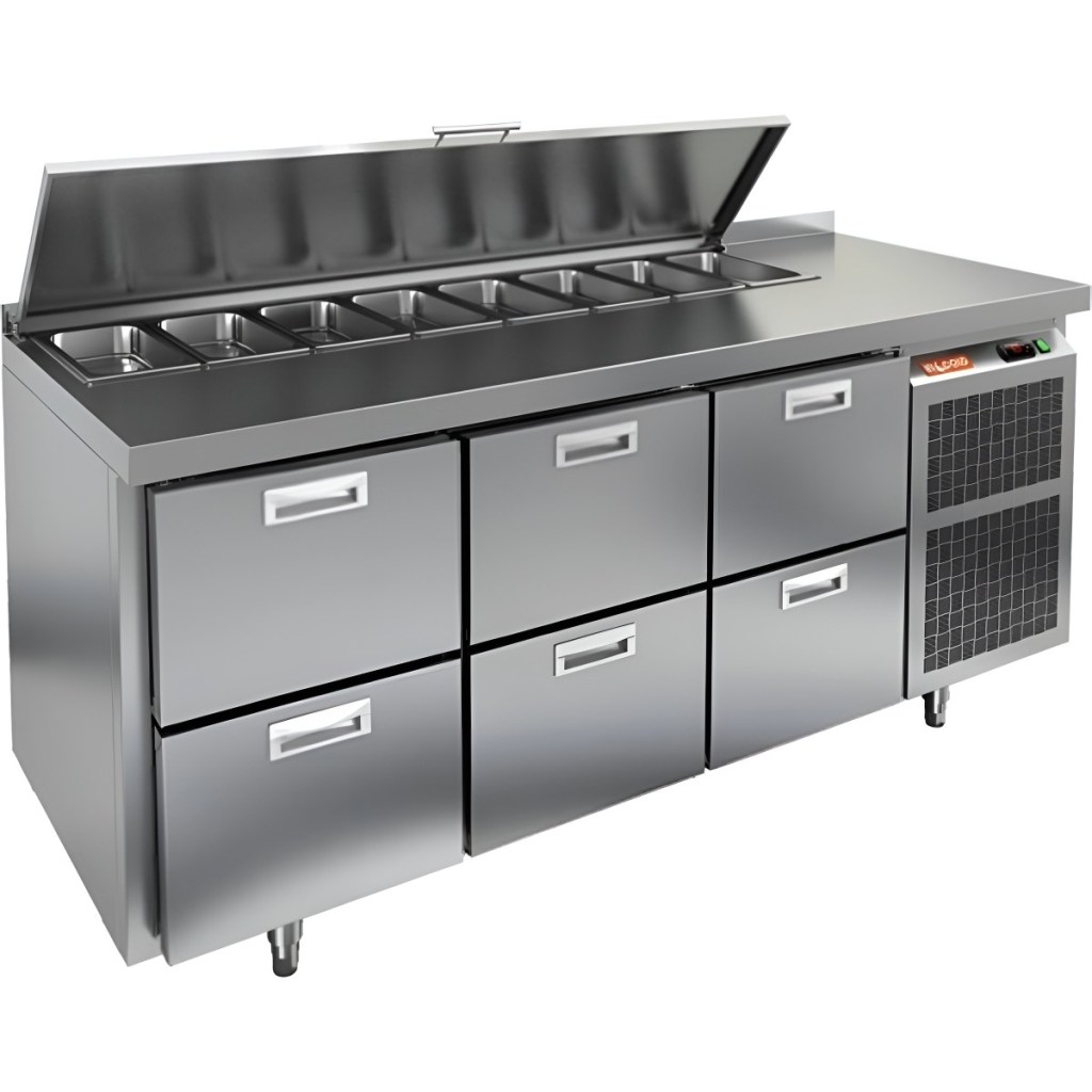Каталог оборудования Холодильное оборудованиеСтолы охлаждаемыеСтолы холодильные для салатовСтол холодильный для салатов HiCold SL1-222SN (1/3) с крышкой Стол холодильный для салатов HiCold SL1-222SN (1/3) с крышкой Код товара: 064-846 Поделиться: WhatsAppTelegram СравнитьДобавить в КПВ избранное 0 259 642 ₽ В корзину 0 шт Под заказСамовывоз сегодня бесплатно Взять в кредит Купить в лизинг Получить консультацию в WhatsApp Описание Характеристики Отзывы 0 Стол холодильный для салатов HiCold SL1-222SN (1/3) предназначен для использования на предприятиях общественного питания и торговли. Он объединяет рабочую поверхность и охлаждаемый отсек, что делает его удобным решением для хранения, охлаждения и подготовки ингредиентов при приготовлении салатов, пиццы и других блюд. Такая конструкция позволяет повару работать быстрее и эффективнее, так как все необходимые продукты находятся под рукой. Корпус и столешница выполнены из прочной нержавеющей стали, устойчивой к коррозии и легко поддающейся санитарной обработке.Металлическая крышка защищает продукты от загрязнений и сохраняет их свежесть. Особенности модели: Электронная панель управления — точная настройка температурного режима. 6 выдвижных ящика — быстрое размещение и замена продуктов. Вместимость салат-бара — до 8 гастроемкостей глубиной до 100 мм. Автоматические доводчики — комфорт при загрузке/выгрузке. Легкозаменяемые магнитные уплотнители — надежная герметичность. Открытая агрегатная часть — быстрый доступ для обслуживания. Регулируемые по высоте ножки — устойчивость даже на неровном полу. Толщина столешницы, борта и теплоизоляции — 50 мм, что обеспечивает прочность и энергоэффективность конструкции. HiCold SL1-222SN (1/3) — практичное и удобное решение для профессиональной кухни, обеспечивающее удобную подготовку и хранение ингредиентов.Изображение товара, представленного на фото, может отличаться от его фактического вида. Показать все Габаритные размеры1835×600×850 ммДиапазон рабочей температурыот +2 до +10 °CРасположение агрегатаБоковое Материал столешницыНержавеющая Тип столаС ящиками Объём435 лТип гастроемкостейGN 1/3 Количество ящиков6 штНапряжение220 ВМощность0,46 кВтТип охлажденияДинамическое Тип оттайкиАвтоматическая СтолешницаС бортом Габариты в упаковке2000×750×1000 ммВес нетто120 кгВес брутто175 кгБрендHicold Оставить отзыв Еще никто не оставил отзыв на этот товар Ранее просмотрено Под заказ 320 392 ₽ Стол холодильный для салатов HiCold SL1-2222GN (1/3) с крышкой Под заказ 149 302 ₽ Стол холодильный для салатов HiCold SLE2-111GN (1/6) О З без крышки Под заказ 67 745 ₽ Витрина для ингредиентов Polair VT2vEN (1/3) с подсветкой и защитным колпаком Под заказ 139 671 ₽ Стол холодильный для салатов HiCold SL1-11SN (1/3) О без крышки