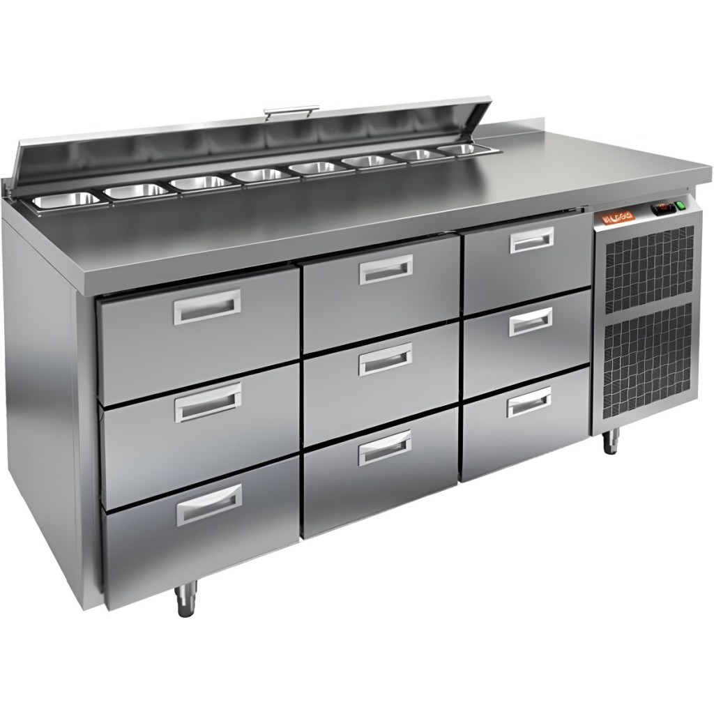 Каталог оборудования Холодильное оборудованиеСтолы охлаждаемыеСтолы холодильные для салатовСтол холодильный для салатов HiCold SL1-333GN (1/3) с крышкой Стол холодильный для салатов HiCold SL1-333GN (1/3) с крышкой Код товара: 064-847 Поделиться: WhatsAppTelegram СравнитьДобавить в КПВ избранное 0 305 992 ₽ В корзину 0 шт Под заказСамовывоз сегодня бесплатно Взять в кредит Купить в лизинг Получить консультацию в WhatsApp Описание Характеристики Отзывы 0 Стол холодильный для салатов HiCold SL1-333GN (1/3) предназначен для использования на предприятиях общественного питания и торговли. Он объединяет рабочую поверхность и охлаждаемый отсек, что делает его удобным решением для хранения, охлаждения и подготовки ингредиентов при приготовлении салатов, пиццы и других блюд. Такая конструкция позволяет повару работать быстрее и эффективнее, так как все необходимые продукты находятся под рукой. Корпус и столешница выполнены из прочной нержавеющей стали, устойчивой к коррозии и легко поддающейся санитарной обработке.Металлическая крышка защищает продукты от загрязнений и сохраняет их свежесть. Особенности модели: Электронная панель управления — точная настройка температурного режима. 9 выдвижных ящика — быстрое размещение и замена продуктов. Вместимость салат-бара — до 8 гастроемкостей глубиной до 100 мм. Автоматические доводчики — комфорт при загрузке/выгрузке. Легкозаменяемые магнитные уплотнители — надежная герметичность. Открытая агрегатная часть — быстрый доступ для обслуживания. Регулируемые по высоте ножки — устойчивость даже на неровном полу. Толщина столешницы, борта и теплоизоляции — 50 мм, что обеспечивает прочность и энергоэффективность конструкции. HiCold SL1-333GN (1/3) — практичное и удобное решение для профессиональной кухни, обеспечивающее удобную подготовку и хранение ингредиентов. Изображение товара, представленного на фото, может отличаться от его фактического вида. Показать все Габаритные размеры1835×700×850 ммДиапазон рабочей температурыот +2 до +10 °CРасположение агрегатаБоковое Материал столешницыНержавеющая Тип столаС ящиками Объём505 лТип гастроемкостейGN 1/3 Количество ящиков9 штНапряжение220 ВМощность0,46 кВтТип охлажденияДинамическое Тип оттайкиАвтоматическая СтолешницаС бортом Габариты в упаковке2000×850×1000 ммВес нетто130 кгВес брутто185 кгБрендHicold Оставить отзыв Еще никто не оставил отзыв на этот товар Ранее просмотрено Под заказ 119 200 ₽ Витрина кондитерская Carboma KC70 N 1,3-2 Light Паттерн (0107 Ольха) хлебная, без стекла Под заказ 149 302 ₽ Стол холодильный для салатов HiCold SLE2-111GN (1/6) О З без крышки Под заказ 204 922 ₽ Стол холодильный для салатов HiCold SL1-22GN (1/3) О с крышкой