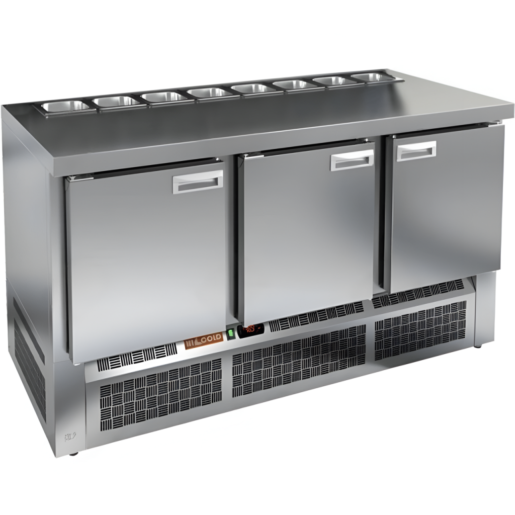 Каталог оборудования Холодильное оборудованиеСтолы охлаждаемыеСтолы холодильные для салатовСтол холодильный для салатов HiCold SLE1-111GN (1/3) без крышки Стол холодильный для салатов HiCold SLE1-111GN (1/3) без крышки Код товара: 064-540 Поделиться: WhatsAppTelegram СравнитьДобавить в КПВ избранное 0 143 362 ₽ В корзину 0 шт Под заказСамовывоз сегодня бесплатно Взять в кредит Купить в лизинг Получить консультацию в WhatsApp Описание Характеристики Отзывы 0 Инструкции 2 Стол холодильный для салатов HiCold SLE1-111SN (1/3) без крышки предназначен для предприятий общественного питания и торговли. Он позволяет хранить и обрабатывать ингредиенты для пиццы, салатов и других блюд, а также охлаждать и кратковременно хранить скоропортящиеся продукты и напитки. Модель совмещает рабочую поверхность и охлаждаемый объем, что обеспечивает удобство работы повара: все необходимые компоненты всегда под рукой. Корпус и столешница выполнены из нержавеющей стали, что гарантирует долговечность и простоту ухода. Особенности: Динамическая система охлаждения — равномерное распределение температуры по всему объему. Автоматическая оттайка — упрощает уход за оборудованием. Электронная панель управления — удобная настройка температуры и режимов работы. 3 вместительные внутренние полки формата GN 1/1 — оптимальное хранение ингредиентов. Автоматические доводчики дверей с фиксатором открытого положения — комфорт и безопасность работы. Легкозаменяемые магнитные уплотнители — простота обслуживания. Открытая агрегатная часть — облегчает доступ для обслуживания. Регулируемые по высоте ножки — адаптация к рабочей поверхности. Размер полки: 430×325 мм (GN 1/1) Максимальная глубина гастроемкостей: 100 мм Столешница с бортом, без крышки: толщина столешницы и теплоизоляции — 50 мм, высота борта — 50 мм HiCold SLE1-111SN (1/3) без крышки — надежный и удобный стол для профессиональной кухни. Он обеспечивает эффективное охлаждение и хранение ингредиентов, а комбинированная рабочая поверхность с холодильным объемом упрощает работу повара, делая процесс приготовления быстрее и удобнее.Изображение товара, представленного на фото, может отличаться от его фактического вида. Показать все Габаритные размеры1485×700×800 ммДиапазон рабочей температурыот +2 до +10 °CРасположение агрегатаНижнее Материал столешницыНержавеющая Тип столаС дверьми Тип двериГлухая Объём375 лКоличество дверей3 штТип гастроемкостейGN 1/3 Размер полки530×325 ммНапряжение220 ВМощность0,46 кВтТип охлажденияДинамический Тип оттайкиАвтоматическая СтолешницаС бортом Вес нетто135 кгВес брутто195 кгБрендHicold Оставить отзыв Еще никто не оставил отзыв на этот товар Паспорт на HICOLD SLE1-111SN.pdfДекларация о соответствии.pdf Ранее просмотрено Под заказ 184 582 ₽ Стол холодильный для салатов HiCold SLE2-22SN (1/6) с крышкой Под заказ 209 400 ₽ Витрина кондитерская Carboma KC84-110 VV 1,2-1 (9005) Под заказ 239 032 ₽ Стол холодильный для салатов HiCold SLE2-222GN (1/6) с крышкой Под заказ 185 392 ₽ Стол холодильный для салатов HiCold SLE1-22GN (1/3) с крышкой Под заказ 98 500 ₽ Витрина кондитерская Carboma KC70 N 0,6-1 Light Паттерн (0107 Ольха) нейтральная Под заказ 123 832 ₽ Стол холодильный для салатов HiCold SLE2-11GN (1/6) O с крышкой Под заказ 227 782 ₽ Стол холодильный для салатов HiCold SL2-122SN (1/6) с крышкой