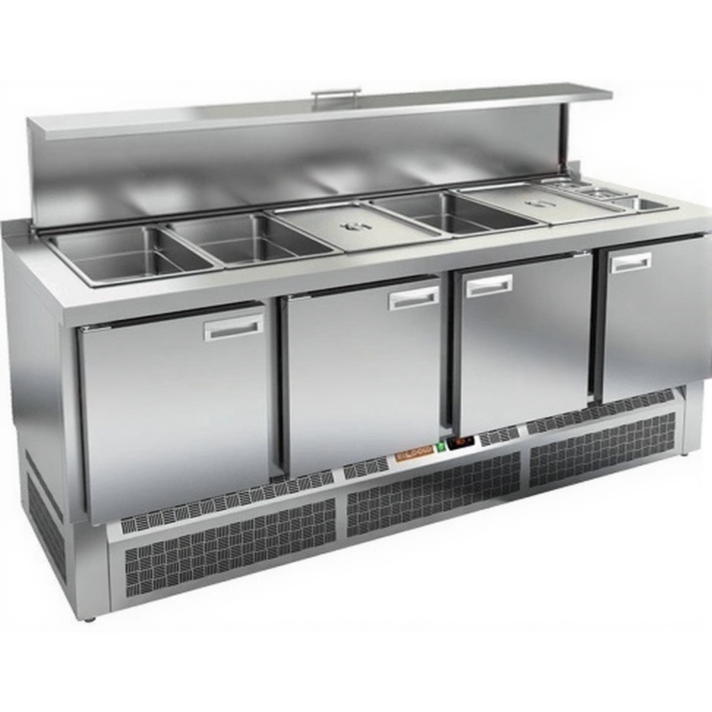 Каталог оборудования Холодильное оборудованиеСтолы охлаждаемыеСтолы холодильные для салатовСтол холодильный для салатов HiCold SLE3-1111GN с крышкой Стол холодильный для салатов HiCold SLE3-1111GN с крышкой Код товара: 064-925 Поделиться: WhatsAppTelegram СравнитьДобавить в КПВ избранное 0 189 082 ₽ В корзину 0 шт Под заказСамовывоз сегодня бесплатно Взять в кредит Купить в лизинг Получить консультацию в WhatsApp Описание Характеристики Отзывы 0 Инструкции 1 Стол холодильный для салатов HiCold SLE3-1111GN скрышкой предназначен для использования на предприятиях общественного питания и торговли. Он сочетает в себе функции охлаждения и хранения ингредиентов, используемых при приготовлении салатов, закусок, сэндвичей и других блюд, требующих кратковременного поддержания температуры. Модель обеспечивает удобный доступ к продуктам и позволяет повару работать максимально эффективно. Корпус и столешница изготовлены из нержавеющей стали, что гарантирует долговечность конструкции, устойчивость к коррозии и соответствие санитарным нормам. Металлическая крышка защищает продукты от загрязнений и сохраняет их свежесть. Особенности модели: Электронная панель управления позволяет точно настраивать температурный режим Четыре вместительные внутренние полки формата GN 1/1 обеспечивают удобную организацию пространства Вместимость салат-бара — 5 гастроемкостей формата GN 1/1 и 3 гастроемкости формата GN 1/6 Поддерживается использование гастроемкостей глубиной до 100 мм Двери оснащены автоматическими доводчиками с фиксацией в открытом положении Легкозаменяемые магнитные уплотнители обеспечивают герметичность и простоту обслуживания Открытая агрегатная часть упрощает доступ для сервисного обслуживания Регулируемые по высоте ножки позволяют адаптировать стол под любую рабочую поверхность Толщина столешницы и теплоизоляции составляет 50 мм, что гарантирует прочность и энергоэффективность Наличие борта повышает гигиеничность работы и облегчает поддержание чистоты на кухне. HiCold SLE3-1111GN с крышкой — это надёжный и практичный салатный стол, который сочетает в себе охлаждаемый отсек и удобную рабочую зону. Модель идеально подходит для интенсивной эксплуатации в профессиональных кухнях, обеспечивая быстрое обслуживание и надёжное хранение ингредиентов.Изображение товара, представленного на фото, может отличаться от его фактического вида. Показать все Габаритные размеры1970×700×1055 ммДиапазон рабочей температурыот +2 до +10 °CРасположение агрегатаНижнее Материал столешницыНержавеющая Тип столаС дверьми Тип двериГлухая Объём570 лКоличество дверей4 штТип гастроемкостейGN 1/1, GN 1/6 Размер полки530×325 (GN 1/1) ммНапряжение220 ВМощность0,46 кВтТип охлажденияДинамическое Тип оттайкиАвтоматическая СтолешницаС бортом Вес нетто133 кгВес брутто189 кгБрендHicold Оставить отзыв Еще никто не оставил отзыв на этот товар Паспорт на HICOLD SLE3-1111GN.pdf Ранее просмотрено Под заказ 177 831 ₽ Стол холодильный для салатов HiCold SLE2-112GN (1/6) с крышкой Под заказ 260 632 ₽ Стол холодильный для салатов HiCold SLE3-222GN высокое стекло Под заказ 180 600 ₽ Витрина кондитерская Carboma K70 VM 1,3-2 Standard (9006-9005) (ВХСв-1,3д Carboma ТЕХНО)