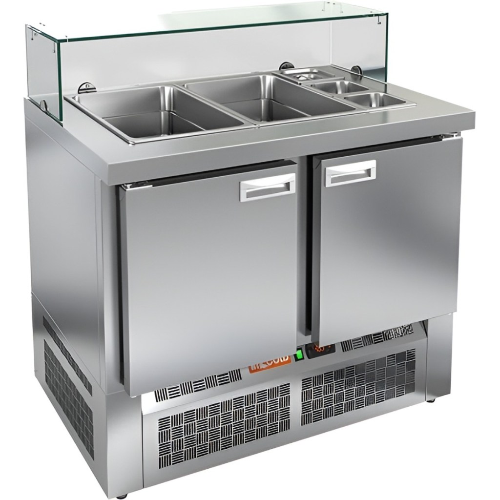 Стол холодильный для салатов HiCold SLE3-11GN низкое стекло предназначен для охлаждения и кратковременного хранения продуктов, используемых при приготовлении салатов, закусок, сэндвичей и других блюд. Он широко применяется на предприятиях общественного питания и торговли.