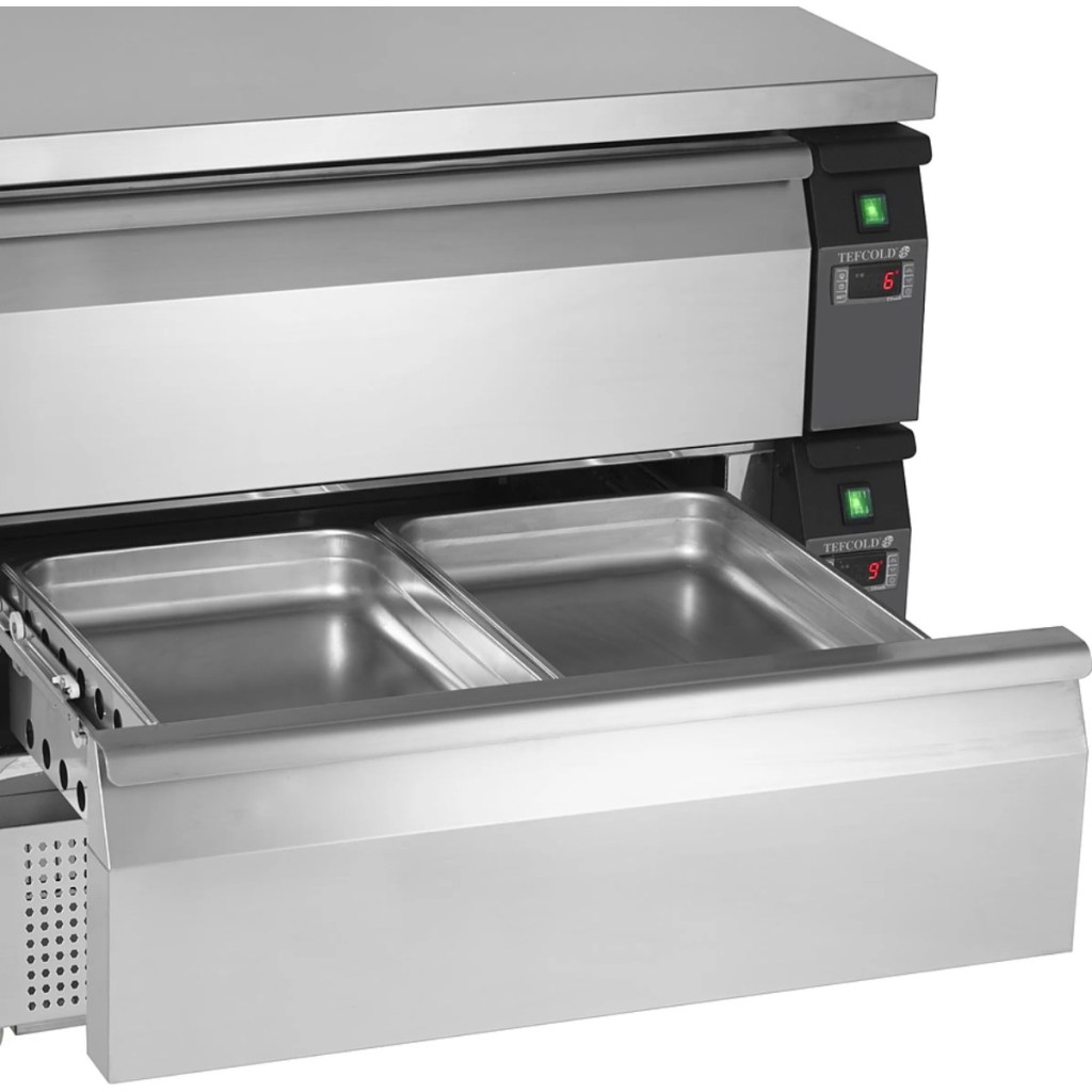Каталог оборудования Холодильное оборудованиеСтолы охлаждаемыеСтолы холодильные комбинированныеСтол холодильно-морозильный TEFCOLD UD2-2 Стол холодильно-морозильный TEFCOLD UD2-2 Код товара: 066-726 Поделиться: WhatsAppTelegram 0 Цена по запросу Получить консультацию в WhatsApp Описание Характеристики Отзывы 0 Инструкции 2 Стол холодильно-морозильный TEFCOLD UD2-2 предназначен для раскатки теста, обработки ингредиентов и кратковременного хранения продуктов на предприятиях общественного питания и торговли. Модель оснащена столешницей без борта, двумя выдвижными ящиками формата GN2/1, термометром и четырьмя поворотными колесами, два из которых снабжены тормозами. Корпус и внутренняя отделка выполнены из прочной нержавеющей стали марки SS304, что обеспечивает надежность, устойчивость к коррозии и лёгкость в уходе. Особенности модели: Эффективная система динамического охлаждения для равномерного распределения температуры Автоматическая оттайка, исключающая образование наледи Современный электронный контроллер для точного управления параметрами Возможность переключения между холодильным и морозильным режимами Вместительные выдвижные ящики GN2/1 с прочными направляющими (до 60 кг на ящик) Прочная столешница, выдерживающая нагрузку до 240 кг Экологически безопасный хладагент R290 Климатический класс: 5 Мобильная конструкция на поворотных колесах с фиксаторами Общий объём: 179 л, полезный: 102 л Температурный диапазон: • Холодильный режим — от 1 до 4 °C • Морозильный режим — от −21 до −18 °C Входная мощность: 0,54 кВт Энергопотребление: 3,66 кВт/сутки (1336 кВт⋅ч/год) Уровень шума: 54 дБ Подзарядка хладагентом: 140 г Внутренние размеры: 675×565×470 мм TEFCOLD UNI-DRAWER UD2-2 — компактный и функциональный холодильный стол, сочетающий удобство работы и надёжное охлаждение. Благодаря прочной конструкции из нержавеющей стали, вместительным ящикам и возможности выбора режима работы (охлаждение или заморозка), модель идеально подходит для профессиональных кухонь и предприятий общественного питания.Изображение товара, представленного на фото, может отличаться от его фактического вида. Показать все Габаритные размеры905×700×865 ммТемпература морозильного отделенияот -21 до -18 °CТемпература холодильного отделенияот +1 до +4 °CРасположение агрегатаНижнее Материал столешницыНержавеющая Тип столаС дверьми Тип двериГлухая Общий объем179 лПолезный объем102 лКоличество ящиков2 штКлиматический класс5 Напряжение220 ВМощность0,54 кВтТип охлажденияДинамический Тип оттайкиАвтоматическая ХладагентR290 Габариты в упаковке980×770×1000 ммВес нетто113 кгВес брутто125 кгБрендTefcold Оставить отзыв Еще никто не оставил отзыв на этот товар Инструкция на TEFCOLD UNI-DRAWER UD2-2.pdfСпецификация на TEFCOLD UNI-DRAWER UD2-2.pdf Ранее просмотрено Под заказ Цена по запросу Холодильная витрина МХМ Валенсия ВХСн-1,25
