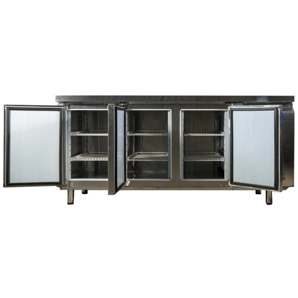 Каталог оборудования Холодильное оборудованиеСтолы охлаждаемыеСтолы холодильные среднетемпературныеСтол холодильный среднетемпературный Ангара СХБ 1,835-500 Стол холодильный среднетемпературный Ангара СХБ 1,835-500 Код товара: 066-351 Поделиться: WhatsAppTelegram СравнитьДобавить в КПВ избранное 0 139 948 ₽ В корзину 0 шт Под заказСамовывоз сегодня бесплатно Взять в кредит Купить в лизинг Получить консультацию в WhatsApp Описание Характеристики Отзывы 0 Стол холодильный среднетемпературный Ангара СХБ 1,835-500 предназначен для обработки ингредиентов и кратковременного хранения скоропортящихся продуктов и напитков на предприятиях общественного питания и торговли. Модель сочетает компактные размеры, функциональность и надёжность, обеспечивая удобство работы на кухне. Особенности модели: Электронное управление — интуитивно понятная панель позволяет точно регулировать температурный режим и контролировать работу устройства. Корпус и столешница из нержавеющей стали — обеспечивают долговечность, устойчивость к коррозии и лёгкость в уходе. Три дверцы и три полки размером 330×325 — обеспечивают удобный доступ к продуктам и рациональное использование внутреннего пространства. Регулируемые ножки — позволяют адаптировать высоту стола под индивидуальные условия рабочей зоны. Автоматические доводчики дверей с фиксацией — двери закрываются плавно и остаются зафиксированными в открытом положении при необходимости. Съёмные магнитные уплотнители — упрощают чистку и замену, поддерживая герметичность и эффективность охлаждения. Диапазон температур: -2…+10 °C / +2…+10 °C, что позволяет использовать стол как для охлаждённых, так и для быстро портящихся продуктов. Холодильный стол Ангара СХБ 1,835-500 — это практичное и надёжное решение для профессиональных кухонь и торговых точек. Совмещение эргономичной конструкции, долговечных материалов и точного электронного контроля температуры обеспечивает удобство эксплуатации и эффективное хранение продуктов в оптимальных условиях.Изображение товара, представленного на фото, может отличаться от его фактического вида. Показать все Габаритные размеры1835×500×850 ммДиапазон рабочей температурыот -2 до +10 °CРасположение агрегатаБоковое Материал столешницыНержавеющая Тип столаС дверьми Тип двериГлухая Объём350 лКоличество дверей3 штКоличество полок3 штРазмер полки330×325 ммНапряжение220 ВМощность0,46 кВтТип охлажденияДинамическое Тип оттайкиАвтоматическая СтолешницаС бортом БрендАнгараВсе нержавеющие холодильные столы Все холодильные столы с бортом Оставить отзыв Еще никто не оставил отзыв на этот товар Ранее просмотрено В наличии 134 239 ₽ Стол холодильный среднетемпературный HiCold GN 13/TN