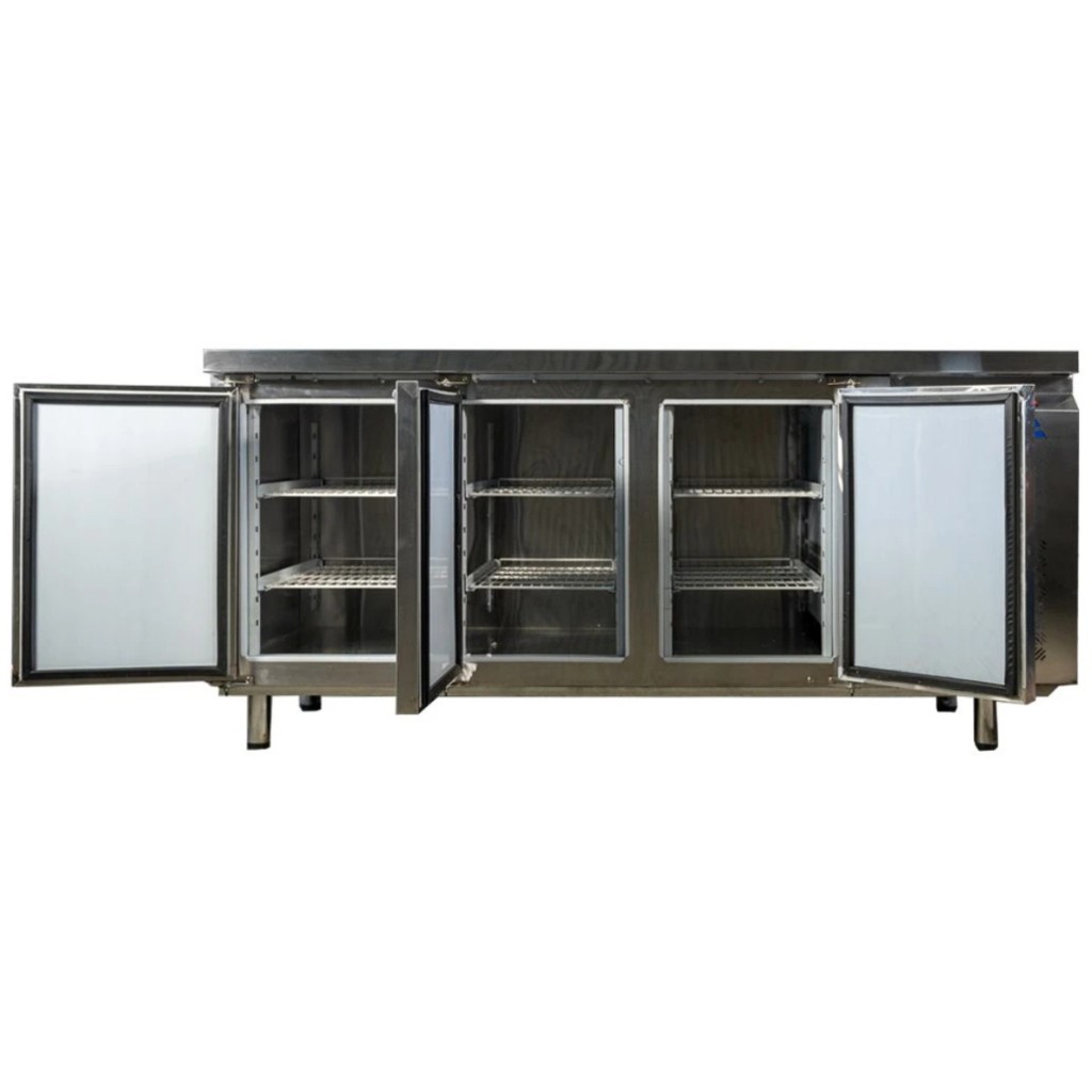 Каталог оборудования Холодильное оборудованиеСтолы охлаждаемыеСтолы холодильные среднетемпературныеСтол холодильный среднетемпературный Ангара СХБ 1,835-700 Стол холодильный среднетемпературный Ангара СХБ 1,835-700 Код товара: 066-353 Поделиться: WhatsAppTelegram СравнитьДобавить в КПВ избранное 0 140 538 ₽ В корзину 0 шт Под заказСамовывоз сегодня бесплатно Взять в кредит Купить в лизинг Получить консультацию в WhatsApp Описание Характеристики Отзывы 0 Стол холодильный среднетемпературный Ангара СХБ 1,835-700 предназначен для обработки ингредиентов и кратковременного хранения скоропортящихся продуктов и напитков на предприятиях общественного питания и торговли. Модель сочетает компактные размеры, функциональность и надёжность, обеспечивая удобство работы на кухне. Особенности модели: Электронное управление — интуитивно понятная панель позволяет точно регулировать температурный режим и контролировать работу устройства. Корпус и столешница из нержавеющей стали — обеспечивают долговечность, устойчивость к коррозии и лёгкость в уходе. Три дверцы и три полки размером 530×325 мм — обеспечивают удобный доступ к продуктам и рациональное использование внутреннего пространства. Регулируемые ножки — позволяют адаптировать высоту стола под индивидуальные условия рабочей зоны. Автоматические доводчики дверей с фиксацией — двери закрываются плавно и остаются зафиксированными в открытом положении при необходимости. Съёмные магнитные уплотнители — упрощают чистку и замену, поддерживая герметичность и эффективность охлаждения. Диапазон температур: -2…+10 °C / +2…+10 °C, что позволяет использовать стол как для охлаждённых, так и для быстро портящихся продуктов. Холодильный стол Ангара СХБ 1,835-700 — это практичное и надёжное решение для профессиональных кухонь и торговых точек. Совмещение эргономичной конструкции, долговечных материалов и точного электронного контроля температуры обеспечивает удобство эксплуатации и эффективное хранение продуктов в оптимальных условиях.Изображение товара, представленного на фото, может отличаться от его фактического вида. Показать все Габаритные размеры1835×700×850 ммДиапазон рабочей температурыот -2 до +10 °CРасположение агрегатаБоковое Материал столешницыНержавеющая Тип столаС дверьми Тип двериГлухая Объём505 лКоличество дверей3 штКоличество полок3 штРазмер полки530×325 ммНапряжение220 ВМощность0,46 кВтТип охлажденияДинамическое Тип оттайкиАвтоматическая СтолешницаС бортом БрендАнгараВсе нержавеющие холодильные столы Все холодильные столы с бортом Оставить отзыв Еще никто не оставил отзыв на этот товар Ранее просмотрено Под заказ 180 557 ₽ Горка холодильная МХМ Купец ВХСп-1,875 new боковины с зеркалом