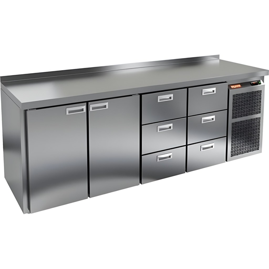 Каталог оборудования Холодильное оборудованиеСтолы охлаждаемыеСтолы холодильные среднетемпературныеСтол холодильный среднетемпературный HiCold GN 1133 BR2 TN Стол холодильный среднетемпературный HiCold GN 1133 BR2 TN Код товара: 062-299 Поделиться: WhatsAppTelegram СравнитьДобавить в КПВ избранное 0 275 932 ₽ В корзину 0 шт Под заказСамовывоз сегодня бесплатно Взять в кредит Купить в лизинг Получить консультацию в WhatsApp Описание Характеристики Отзывы 0 Стол холодильный среднетемпературный HiCold GN 1133 BR2 TN сочетает рабочую поверхность для раскатки теста и подготовки ингредиентов с камерой для охлаждения и кратковременного хранения скоропортящихся продуктов и напитков. Это оборудование отлично подходит для предприятий общественного питания, обеспечивая удобство и высокую производительность. Особенности: Увеличенный объём камеры для хранения большего количества продуктов. Климатическое исполнение Pro Line обеспечивает работу при температуре до +40 °C. Полки и направляющие выполнены по стандарту GN для совместимости с профессиональным оборудованием. Прочный цельнозаливной корпус из нержавеющей стали с 50 мм изоляцией для высокой герметичности и долговечности. Надёжный электронный блок управления с несколькими режимами оттаивания для стабильной работы. Вентилятор повышенной мощности обеспечивает равномерное и быстрое охлаждение. Интеллектуальная система автоматического размораживания. Термическое выпаривание конденсата предотвращает накопление влаги. Энергоэффективный компрессор снижает затраты на электроэнергию. Упрощённый доступ к агрегатам для быстрого и удобного сервисного обслуживания. Двери оборудованы доводчиками для мягкого и плотного закрытия. Регулируемые по высоте низкие ножки обеспечивают устойчивость на любой поверхности. Полки рассчитаны на нагрузку до 50 кг, что позволяет хранить тяжелые продукты. Высота борта 50 мм предотвращает падение продуктов со столешницы. HiCold GN 1133 BR2 TN — это надежное и эргономичное решение для профессиональных кухонь, обеспечивающее эффективное охлаждение и удобство в работе. Высокое качество материалов и продуманные технические решения делают этот холодильный стол практичным, энергоэффективным и простым в обслуживании.Изображение товара, представленного на фото, может отличаться от его фактического вида. Показать все Габаритные размеры2395×700×850 ммДиапазон рабочей температурыот -2 до +10 °CРасположение агрегатаБоковое Материал столешницыНержавеющая Тип столаС дверьми и ящиками Тип двериГлухая Объём730 лКоличество дверей2 штКоличество полок2 штКоличество ящиков6 штРазмер полки530×325 ммНапряжение220 ВМощность0,51 кВтТип охлажденияДинамический Тип оттайкиАвтоматическая СтолешницаС бортом Вес нетто192 кгВес брутто211 кгБрендHicoldВсе холодильные столы HicoldВсе нержавеющие холодильные столы Все холодильные столы с бортом Оставить отзыв Еще никто не оставил отзыв на этот товар Похожие товары Перейти в каталог Под заказ 79 911 ₽ Стол холодильный среднетемпературный HiCold GN 1/TN W Под заказ 104 947 ₽ Стол холодильный среднетемпературный Abat СХС-70 с бортом (дверь) С этим товаром покупают В наличии 96 390 ₽ Шкаф холодильный Полюс Carboma R560 В наличии 58 095 ₽ Витрина холодильная для ингредиентов HICOLD VRTU 1835 1/3 Ранее просмотрено Под заказ 169 192 ₽ Стол холодильный среднетемпературный HiCold GN 112/TN О Под заказ 15 001 ₽ Ванна моечная МХМ ВМ