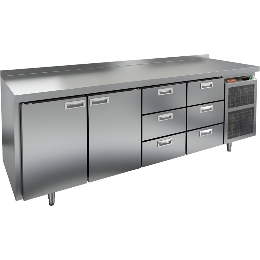 Каталог оборудования Холодильное оборудованиеСтолы охлаждаемыеСтолы холодильные среднетемпературныеСтол холодильный среднетемпературный HiCold SN 1133/TN Стол холодильный среднетемпературный HiCold SN 1133/TN Код товара: 001-335 Поделиться: WhatsAppTelegram СравнитьДобавить в КПВ избранное 0 258 742 ₽ В корзину 0 шт Под заказСамовывоз сегодня бесплатно Взять в кредит Купить в лизинг Получить консультацию в WhatsApp Описание Характеристики Отзывы 0 Инструкции 1 Стол холодильный среднетемпературный HiCold SN 1133/TN сочетает в себе рабочую поверхность для раскатывания теста и обработки ингредиентов, а также охлаждающую камеру для кратковременного хранения скоропортящихся продуктов и напитков. Оборудование предназначено для предприятий общественного питания и обеспечивает комфортную и эффективную работу на кухне. Особенности: Цельнозаливной корпус из нержавеющей стали с 50 мм теплоизоляцией, обеспечивающий высокую герметичность и жесткость конструкции. Надежный электронный блок управления с несколькими режимами оттаивания для удобства эксплуатации. Вентилятор повышенной мощности, обеспечивающий принудительную вентиляцию по всему объему стола и равномерное быстрое охлаждение. Интеллектуальное размораживание и термическое выпаривание конденсата для поддержания оптимальных условий внутри камеры. Новая экономичная модель компрессора, снижающая энергопотребление. Облегченный доступ к агрегату для удобства сервисного обслуживания. Двери с петлями-доводчиками, повышающими комфорт и безопасность при эксплуатации. Регулируемые по высоте ножки для адаптации к рабочей поверхности и неровностям пола. Максимальная нагрузка на полку — 50 кг. Высота борта — 50 мм для удобства и безопасности работы. Рабочая температура окружающего воздуха — от 12 до 37 °C. HiCold SN 1133/TN — это надежное, эргономичное и энергоэффективное решение для профессиональной кухни, сочетающее качественные материалы и современные технологии для оптимального хранения и подготовки продуктов.Изображение товара, представленного на фото, может отличаться от его фактического вида. Показать все Габаритные размеры2280×600×850 ммДиапазон рабочей температурыот -2 до +10 °CРасположение агрегатаБоковое Материал столешницыНержавеющая Тип столаС дверьми и ящиками Тип двериГлухая Объём570 лКоличество дверей2 штКоличество ящиков6 штНапряжение220 ВМощность0,48 кВтТип охлажденияДинамический Тип оттайкиАвтоматическая СтолешницаС бортом Вес нетто142 кгВес брутто156 кгБрендHicoldВсе холодильные столы HicoldВсе нержавеющие холодильные столы Все холодильные столы с бортом Оставить отзыв Еще никто не оставил отзыв на этот товар Паспорт на HICOLD SN 1133/TN.pdf Похожие товары Перейти в каталог Под заказ 228 142 ₽ Стол холодильный среднетемпературный HiCold SN 1122/TN Под заказ 148 851 ₽ Стол холодильный среднетемпературный HiCold SN 1111/TN W С этим товаром покупают В наличии 203 915 ₽ Шкаф комбинированный Polair СС 214-S Под заказ 61 119 ₽ Витрина холодильная для ингредиентов HICOLD VRTO 2280 1/3 В наличии 90 200 ₽ Плита индукционная Аbat КИП-29П-3,5-01 Ранее просмотрено Под заказ 162 262 ₽ Стол холодильный среднетемпературный HiCold GN 12 BR2 TN