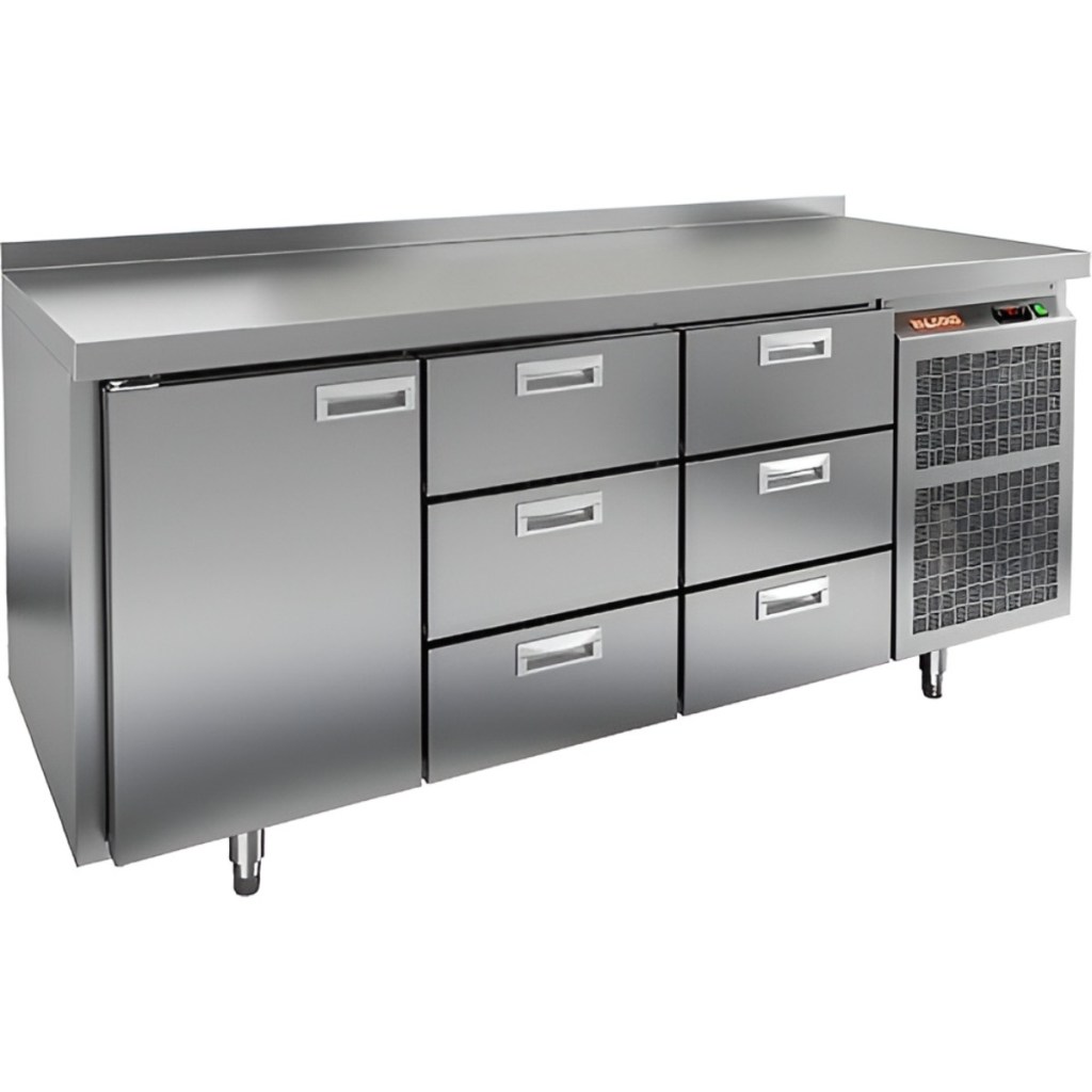 Каталог оборудования Холодильное оборудованиеСтолы охлаждаемыеСтолы холодильные среднетемпературныеСтол холодильный среднетемпературный HiCold SN 133/TN Стол холодильный среднетемпературный HiCold SN 133/TN Код товара: 001-333 Поделиться: WhatsAppTelegram СравнитьДобавить в КПВ избранное 0 229 942 ₽ В корзину 0 шт Под заказСамовывоз сегодня бесплатно Взять в кредит Купить в лизинг Получить консультацию в WhatsApp Описание Характеристики Отзывы 0 Инструкции 2 Стол холодильный среднетемпературный HiCold SN 133/TN сочетает в себе рабочую поверхность для раскатывания теста и обработки ингредиентов, а также охлаждающую камеру для кратковременного хранения скоропортящихся продуктов и напитков. Оборудование предназначено для предприятий общественного питания и обеспечивает комфортную и эффективную работу на кухне. Особенности: Цельнозаливной корпус из нержавеющей стали с 50 мм теплоизоляцией, обеспечивающий высокую герметичность и жесткость конструкции. Надежный электронный блок управления с несколькими режимами оттаивания для удобства эксплуатации. Вентилятор повышенной мощности, обеспечивающий принудительную вентиляцию по всему объему стола и равномерное быстрое охлаждение. Интеллектуальное размораживание и термическое выпаривание конденсата для поддержания оптимальных условий внутри камеры. Новая экономичная модель компрессора, снижающая энергопотребление. Облегченный доступ к агрегату для удобства сервисного обслуживания. Двери с петлями-доводчиками, повышающими комфорт и безопасность при эксплуатации. Регулируемые по высоте ножки для адаптации к рабочей поверхности и неровностям пола. Максимальная нагрузка на полку — 50 кг. Высота борта — 50 мм для удобства и безопасности работы. Рабочая температура окружающего воздуха — от 12 до 37 °C. HiCold SN 133/TN — это надежное, эргономичное и энергоэффективное решение для профессиональной кухни, сочетающее качественные материалы и современные технологии для оптимального хранения и подготовки продуктов.Изображение товара, представленного на фото, может отличаться от его фактического вида. Показать все Габаритные размеры1835×600×850 ммДиапазон рабочей температурыот -2 до +10 °CРасположение агрегатаБоковое Материал столешницыНержавеющая Тип столаС дверьми и ящиками Тип двериГлухая Объём435 лКоличество дверей1 штКоличество ящиков6 штНапряжение220 ВМощность0,46 кВтТип охлажденияДинамический Тип оттайкиАвтоматическая СтолешницаС бортом Вес нетто117 кгВес брутто129 кгБрендHicoldВсе холодильные столы HicoldВсе оцинкованные холодильные столы Оставить отзыв Еще никто не оставил отзыв на этот товар Паспорт на HICOLD SN 133/TN.pdfДекларация о соответствии.pdf Похожие товары Перейти в каталог В наличии 138 141 ₽ Стол холодильный среднетемпературный HiCold SN 111/TN Под заказ 149 882 ₽ Стол холодильный среднетемпературный Abat СХС-70-02 с бортом (дверь, дверь, дверь) В наличии 121 605 ₽ Стол холодильный среднетемпературный Cooleq GN3200TNG с бортом С этим товаром покупают Под заказ 168 276 ₽ Шкаф холодильный универсальный Polair CV 110-G Под заказ 58 528 ₽ Витрина холодильная для ингредиентов HICOLD VRTG 1000 1/3 В наличии 82 830 ₽ Плита индукционная Аbat КИП-27Н-3,5 Ранее просмотрено В наличии 229 491 ₽ Стол холодильный среднетемпературный HiCold BN 133/TN В наличии Цена по запросу Витрина холодильная Иней LIDA-MIDI SU 3,75