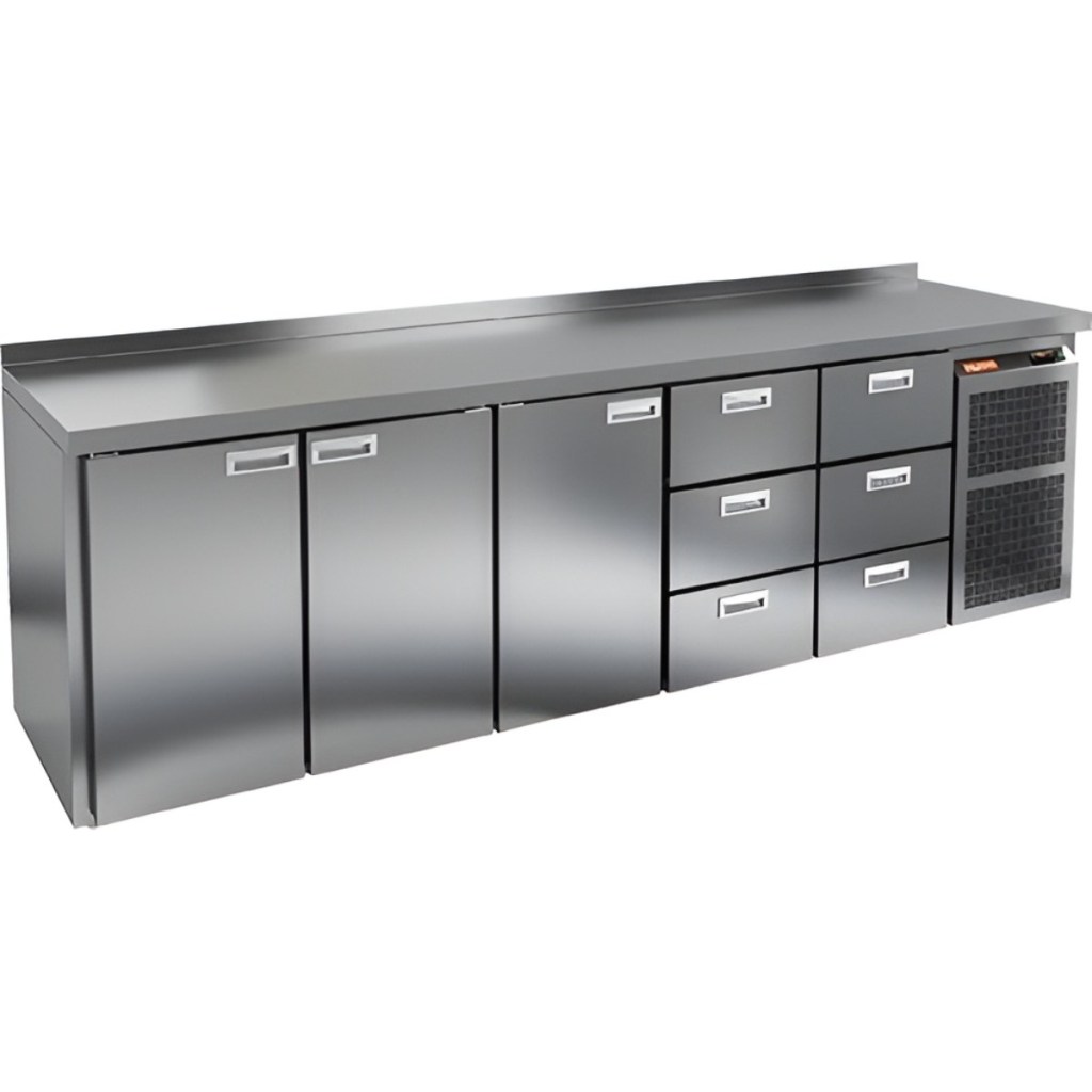 Каталог оборудования Холодильное оборудованиеСтолы охлаждаемыеСтолы морозильные низкотемпературныеСтол морозильный HiCold GN 11133 BR2 BT Стол морозильный HiCold GN 11133 BR2 BT Код товара: 062-355 Поделиться: WhatsAppTelegram СравнитьДобавить в КПВ избранное 0 339 292 ₽ В корзину 0 шт Под заказСамовывоз сегодня бесплатно Взять в кредит Купить в лизинг Получить консультацию в WhatsApp Описание Характеристики Отзывы 0 Инструкции 2 Стол морозильный HiCold GN 11133 BR2 BT представляет собой универсальное профессиональное оборудование, объединяющее функциональность рабочей поверхности и морозильной камеры. Он предназначен для раскатки теста, подготовки ингредиентов и хранения замороженных продуктов и полуфабрикатов. Идеально подходит для использования на предприятиях общественного питания. Ключевые особенности: Увеличенный внутренний объем для хранения больших объёмов продукции Работа при температуре окружающей среды до +32 °C Совместимость с гастроемкостями стандарта GN: направляющие, полки и стойки выполнены по профессиональному стандарту Цельнозаливной корпус из нержавеющей стали с изоляцией 50 мм — обеспечивает герметичность, жесткость и эффективное сохранение холода Надёжный электронный блок управления с несколькими режимами размораживания Вентилятор повышенной мощности и принудительная вентиляция — равномерное и быстрое охлаждение по всему объему Интеллектуальная система оттаивания и термическое выпаривание конденсата Экономичный компрессор нового поколения Упрощённый доступ к агрегатному отсеку — быстрое и удобное сервисное обслуживание Петли-доводчики дверей и ПЭН по контуру, предотвращающий примерзание Низкие ножки для удобства установки Нагрузка на полку — до 50 кг Борт высотой 50 мм — защита рабочей зоны от загрязнений HiCold GN 11133 BR2 BT — это мощный и надёжный морозильный стол, сочетающий эргономику, увеличенный объем хранения и современные технологии охлаждения. Он станет отличным решением для профессиональных кухонь, где важно рациональное использование пространства, высокая производительность и стабильность температурного режима.Изображение товара, представленного на фото, может отличаться от его фактического вида. Показать все Габаритные размеры2840×700×850 ммДиапазон рабочей температурыот -18 до -10 °CРасположение агрегатаБоковое Материал столешницыНержавеющая Тип столаС дверьми и ящиками Тип двериГлухая Объём904 лКоличество дверей3 штКоличество полок3 штКоличество ящиков6 штРазмер полки530×325 ммНапряжение220 ВМощность0,76 кВтТип охлажденияДинамический Тип оттайкиАвтоматическая СтолешницаС бортом Вес нетто214 кгВес брутто244 кгБрендHicoldВсе морозильные столы HicoldВсе морозильные столы с бортом Оставить отзыв Еще никто не оставил отзыв на этот товар Паспорт на HICOLD GN 11133 BR2 BT.pdfДекларация о соответствии.pdf Похожие товары Перейти в каталог Под заказ 79 911 ₽ Стол холодильный среднетемпературный HiCold GN 1/TN W Под заказ 104 947 ₽ Стол холодильный среднетемпературный Abat СХС-70 с бортом (дверь) С этим товаром покупают В наличии 96 390 ₽ Шкаф холодильный Полюс Carboma R560 В наличии 58 095 ₽ Витрина холодильная для ингредиентов HICOLD VRTU 1835 1/3 Ранее просмотрено Под заказ 165 908 ₽ Стол морозильный Ангара СХН 1,970-600