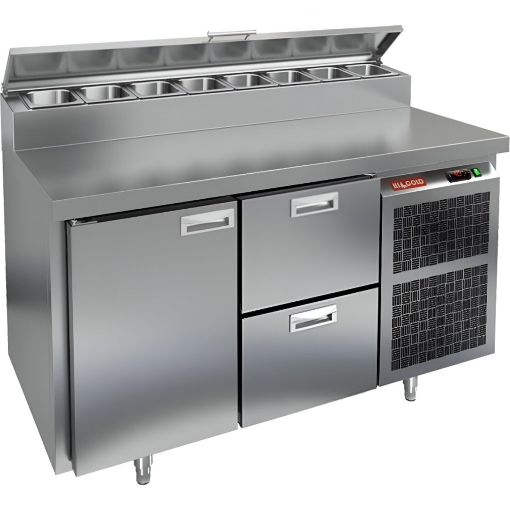 Каталог оборудования Холодильное оборудованиеСтолы охлаждаемыеСтолы холодильные для пиццыСтол холодильный для пиццы HiCold PZ1-12GN (1/3) Стол холодильный для пиццы HiCold PZ1-12GN (1/3) Код товара: 064-703 Поделиться: WhatsAppTelegram СравнитьДобавить в КПВ избранное 0 214 642 ₽ В корзину 0 шт Под заказСамовывоз сегодня бесплатно Взять в кредит Купить в лизинг Получить консультацию в WhatsApp Описание Характеристики Отзывы 0 Инструкции 1 Стол холодильный для пиццы HiCold PZ1-12GN (1/3) — профессиональное оборудование для предприятий общественного питания и торговли. Он объединяет рабочую поверхность для раскатки теста и подготовки ингредиентов с охлаждаемым блоком для кратковременного хранения скоропортящихся продуктов и напитков. Совмещение рабочей поверхности и холодильного объёма обеспечивает удобство и экономию времени — все необходимые компоненты всегда под рукой. Корпус и столешница выполнены из нержавеющей стали, что гарантирует долговечность, устойчивость к повреждениям и лёгкость ухода. Основные особенности: Нержавеющая столешница и корпус — прочность, гигиеничность и лёгкость очистки Динамическая система охлаждения — равномерное распределение холода Автоматическая оттайка — стабильная работа без образования наледи Электронная панель управления — точная настройка температуры 1 дверца и 2 выдвижных ящика — удобная организация внутреннего пространства 1 вместительная полка формата GN 1/1 (размер 530×325 мм) Автоматические доводчики дверей с фиксатором открытого положения — комфорт при работе Легкозаменяемые магнитные уплотнители — поддержание герметичности Открытая агрегатная часть — удобный доступ для обслуживания Регулируемые по высоте ножки — установка на неровных поверхностях Максимальная глубина гастроёмкостей: 100 мм Глубина рабочей поверхности: 324 мм Толщина столешницы и теплоизоляции: 50 мм Вместимость салат-бара: до 7 гастроёмкостей Стол холодильный HiCold PZ1-12GN (1/3) — надёжный и функциональный стол для пиццы и салатов. Прочная конструкция, продуманная организация внутреннего пространства и удобство эксплуатации делают его оптимальным решением для профессиональных кухонь. Изображение товара, представленного на фото, может отличаться от его фактического вида. Показать все Габаритные размеры1390×700×1000 ммДиапазон рабочей температурыот +2 до +10 °CРасположение агрегатаБоковое Материал столешницыНержавеющая Тип столаС дверьми и ящиками Тип двериГлухая Объём350 лТип гастроемкостейGN 1/3 Количество дверей1 штКоличество ящиков2 штРазмер полки530×325 ммНапряжение220 ВМощность0,2 кВтТип охлажденияДинамическое Тип оттайкиАвтоматическая Габариты в упаковке1550×800×1080 ммВес нетто141 кгВес брутто157 кгБрендHicoldВсе холодильные столы для пиццы HicoldВсе нержавеющие холодильные столы для пиццы Оставить отзыв Еще никто не оставил отзыв на этот товар Декларация о соответствии.pdf Ранее просмотрено Под заказ 272 800 ₽ Камера холодильная АСК-холод КХ-13,82 (1360х4660х2720)