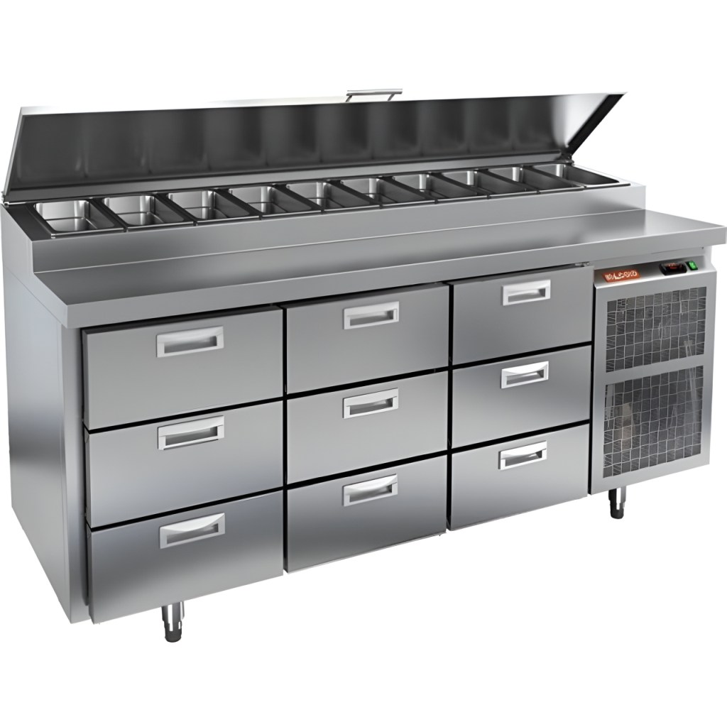 Каталог оборудования Холодильное оборудованиеСтолы охлаждаемыеСтолы холодильные для пиццыСтол холодильный для пиццы HiCold PZ1-333GN (1/3H) Стол холодильный для пиццы HiCold PZ1-333GN (1/3H) Код товара: 064-712 Поделиться: WhatsAppTelegram СравнитьДобавить в КПВ избранное 0 352 072 ₽ В корзину 0 шт Под заказСамовывоз сегодня бесплатно Взять в кредит Купить в лизинг Получить консультацию в WhatsApp Описание Характеристики Отзывы 0 Стол холодильный для пиццы HiCold PZ1-333GN (1/3H) — профессиональное оборудование для предприятий общественного питания и торговли. Он сочетает рабочую поверхность для раскатки теста и подготовки ингредиентов с охлаждаемым блоком для кратковременного хранения скоропортящихся продуктов и напитков. Такое решение обеспечивает максимальное удобство — все необходимые компоненты всегда находятся под рукой. Корпус и столешница выполнены из нержавеющей стали, что гарантирует долговечность, устойчивость к повреждениям и лёгкость ухода. Основные особенности: Нержавеющая столешница и корпус — прочность, гигиеничность и лёгкость очистки Динамическая система охлаждения — равномерное распределение холода Автоматическая оттайка — стабильная работа без образования наледи Электронная панель управления — точная настройка температуры 9 выдвижных ящиков — удобная организация внутреннего пространства без дверцы Автоматические доводчики ящиков — комфорт при работе Легкозаменяемые магнитные уплотнители — поддержание герметичности Открытая агрегатная часть — лёгкий доступ для обслуживания Регулируемые по высоте ножки — установка на неровных поверхностях Максимальная глубина гастроёмкостей: 100 мм Глубина рабочей поверхности: 324 мм Толщина столешницы и теплоизоляции: 50 мм Вместимость салат-бара: до 10 гастроёмкостей Стол холодильный HiCold PZ1-333GN (1/3H) — надёжный и функциональный холодильный стол для пиццы и салатов. Отсутствие дверцы и продуманная система хранения обеспечивают быстрый доступ к ингредиентам, удобство эксплуатации и высокую производительность на профессиональной кухне.Изображение товара, представленного на фото, может отличаться от его фактического вида. Показать все Габаритные размеры1835×700×1000 ммДиапазон рабочей температурыот +2 до +10 °CРасположение агрегатаБоковое Материал столешницыНержавеющая Тип столаС ящиками Объём505 лТип гастроемкостейGN 1/3 Количество ящиков9 штНапряжение220 ВМощность0,5 кВтТип охлажденияДинамическое Тип оттайкиАвтоматическая Габариты в упаковке2000×850×1140 ммВес нетто172 кгВес брутто200 кгБрендHicoldВсе холодильные столы для пиццы HicoldВсе нержавеющие холодильные столы для пиццы Оставить отзыв Еще никто не оставил отзыв на этот товар Ранее просмотрено Под заказ 245 242 ₽ Стол холодильный для пиццы HiCold PZ1-22GN (1/3)
