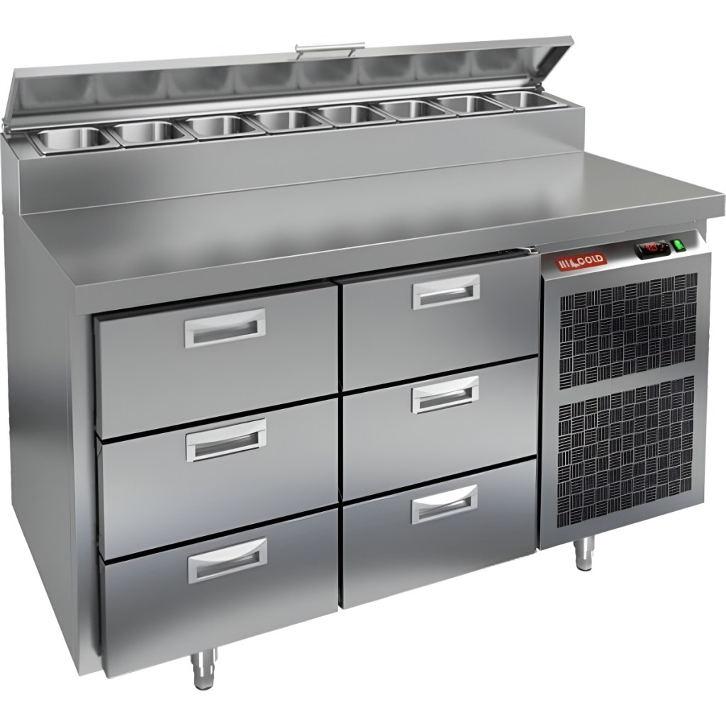 Каталог оборудования Холодильное оборудованиеСтолы охлаждаемыеСтолы холодильные для пиццыСтол холодильный для пиццы HiCold PZ2-33GN (1/6) Стол холодильный для пиццы HiCold PZ2-33GN (1/6) Код товара: 064-766 Поделиться: WhatsAppTelegram СравнитьДобавить в КПВ избранное 0 275 842 ₽ В корзину 0 шт Под заказСамовывоз сегодня бесплатно Взять в кредит Купить в лизинг Получить консультацию в WhatsApp Описание Характеристики Отзывы 0 Стол холодильный для пиццы HiCold PZ2-33GN (1/6) предназначен для кухонь и предприятий общественного питания. Он используется для раскатки теста, подготовки ингредиентов для пиццы, салатов и других блюд, а также для охлаждения и кратковременного хранения скоропортящихся продуктов. Модель совмещает нержавеющую рабочую поверхность и охлаждаемый отсек с 6 выдвижными ящиками, обеспечивая удобный доступ к ингредиентам и эффективное хранение без дверей. Особенности: Динамическаясистема охлаждения для равномерного поддержания температуры Автоматическая оттайка для удобного обслуживания Электронная панель управления для точной настройки параметров Вместительная внутренняя полка формата GN 1/1 (размер 530×325 мм) 6 выдвижных ящиков для хранения ингредиентов Легкозаменяемые магнитные уплотнители для герметичности Открытая агрегатная часть для легкого доступа к компонентам Регулируемые по высоте ножки для устойчивости Нержавеющая столешница глубиной 486 мм и толщиной 50 мм — устойчива к коррозии, легко моется и гигиенична Толщина теплоизоляции: 50 мм Максимальная глубина гастроемкостей: 100 мм Вместимость салат-бара: 8 гастроемкости Стол холодильный HiCold PZ2-33GN (1/6) — это надежное и удобное решение для профессиональной кухни. Он обеспечивает легкий доступ к ингредиентам, упрощает хранение и подготовку продуктов и полностью соответствует стандартам предприятий общественного питания.Изображение товара, представленного на фото, может отличаться от его фактического вида. Показать все Габаритные размеры1390×700×1000 ммДиапазон рабочей температурыот +2 до +10 °CРасположение агрегатаБоковое Материал столешницыНержавеющая Тип столаС ящиками Объём350 лТип гастроемкостейGN 1/6 Количество ящиков6 штНапряжение220 ВМощность0,2 кВтТип охлажденияДинамическое Тип оттайкиАвтоматическая Габариты в упаковке1550×850×1140 ммВес нетто208 кгВес брутто240 кгБрендHicoldВсе холодильные столы для пиццы HicoldВсе нержавеющие холодильные столы для пиццы Оставить отзыв Еще никто не оставил отзыв на этот товар Ранее просмотрено Под заказ 186 745 ₽ Стол холодильный среднетемпературный Polair TMi3GN-220-G