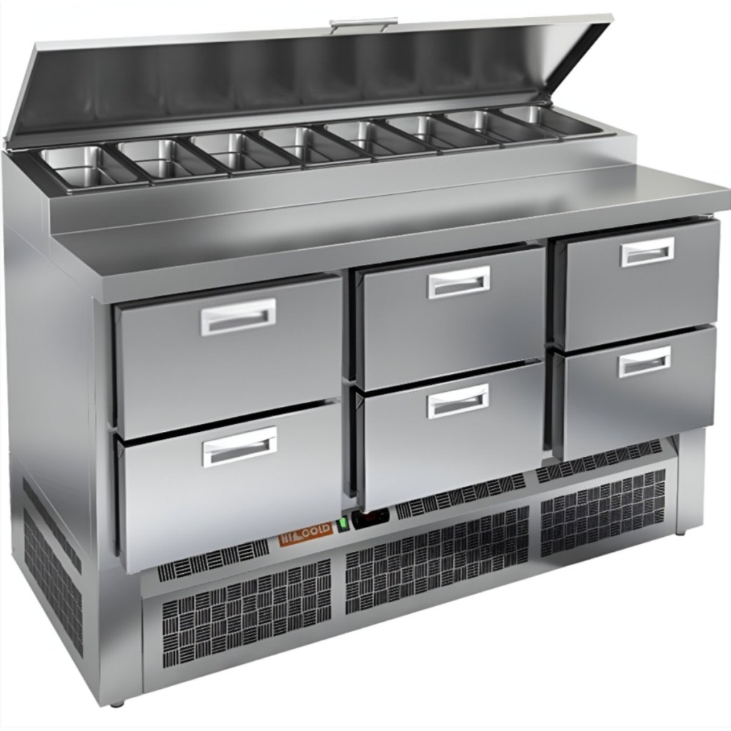 Каталог оборудования Холодильное оборудованиеСтолы охлаждаемыеСтолы холодильные для пиццыСтол холодильный для пиццы HiCold PZE1-222GN (1/3) Стол холодильный для пиццы HiCold PZE1-222GN (1/3) Код товара: 064-727 Поделиться: WhatsAppTelegram СравнитьДобавить в КПВ избранное 0 278 362 ₽ В корзину 0 шт Под заказСамовывоз сегодня бесплатно Взять в кредит Купить в лизинг Получить консультацию в WhatsApp Описание Характеристики Отзывы 0 Стол холодильный для пиццы HiCold PZE1-222GN (1/3) — профессиональное оборудование для предприятий общественного питания и торговли. Он предназначен для раскатки теста и подготовки ингредиентов, используемых при приготовлении пиццы, салатов и других блюд, а также для охлаждения и кратковременного хранения скоропортящихся продуктов и напитков. Совмещение рабочей поверхности и охлаждаемого блока значительно упрощает работу повара — все необходимые компоненты находятся под рукой. Корпус и столешница выполнены из нержавеющей стали, обеспечивая долговечность, устойчивость к повреждениям и лёгкость ухода. Основные особенности: Динамическая система охлаждения — равномерное распределение холода по всему объёму Автоматическая оттайка — стабильная работа без образования наледи Электронная панель управления — точная настройка температуры 6 выдвижных ящика — удобная организация внутреннего пространства Автоматические доводчики ящиков — комфорт при работе Легкозаменяемые магнитные уплотнители — поддержание герметичности Открытая агрегатная часть — лёгкий доступ к техническим элементам Регулируемые по высоте ножки — установка на неровных поверхностях Максимальная глубина гастроёмкостей: 100 мм Глубина рабочей поверхности: 324 мм Толщина столешницы: 50 мм Толщина теплоизоляции: 50 мм Вместимость салат-бара: до 8 гастроёмкостей HiCold PZE1-222GN (1/3) с четырьмя выдвижными ящиками — надёжный и функциональный холодильный стол для пиццы и салатов. Продуманная организация хранения и удобство эксплуатации обеспечивают быстрый доступ к ингредиентам и повышают производительность на профессиональной кухне.Изображение товара, представленного на фото, может отличаться от его фактического вида. Показать все Габаритные размеры1485×700×990 ммДиапазон рабочей температурыот +2 до +10 °CРасположение агрегатаНижнее Материал столешницыНержавеющая Тип столаС ящиками Объём375 лТип гастроемкостейGN 1/3 Количество ящиков6 штНапряжение220 ВМощность0,22 кВтТип охлажденияДинамическое Тип оттайкиАвтоматическая Габариты в упаковке1680×840×1170 ммВес нетто115 кгВес брутто153 кгБрендHicoldВсе холодильные столы для пиццы HicoldВсе нержавеющие холодильные столы для пиццы Оставить отзыв Еще никто не оставил отзыв на этот товар Ранее просмотрено Под заказ 193 041 ₽ Стол холодильный среднетемпературный HiCold SN 122/TN P (без агрегата)