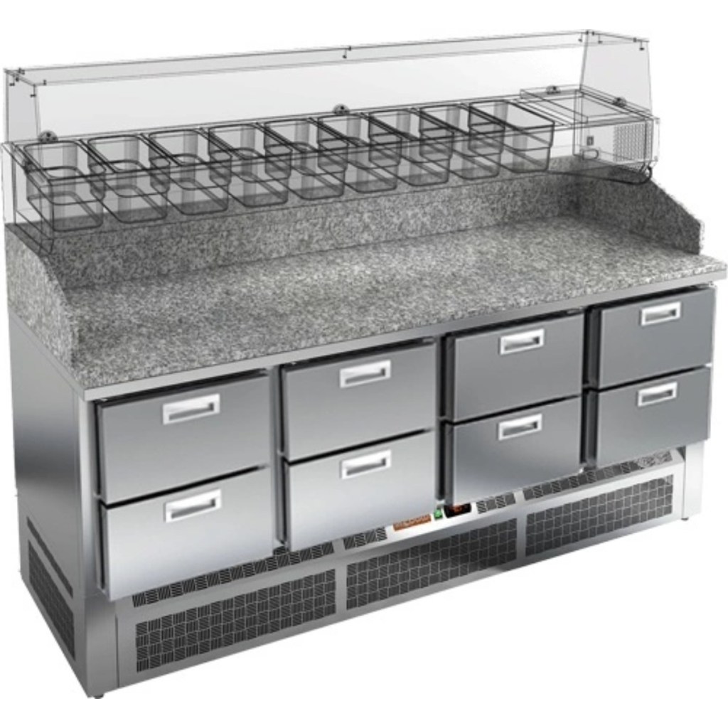 Каталог оборудования Холодильное оборудованиеСтолы охлаждаемыеСтолы холодильные для пиццыСтол холодильный для пиццы HiCold PZE3-222/GN камень Стол холодильный для пиццы HiCold PZE3-222/GN камень Код товара: 064-994 Поделиться: WhatsAppTelegram СравнитьДобавить в КПВ избранное 0 343 342 ₽ В корзину 0 шт Под заказСамовывоз сегодня бесплатно Взять в кредит Купить в лизинг Получить консультацию в WhatsApp Описание Характеристики Отзывы 0 Стол холодильный для пиццы HiCold PZE3-222/GN камень предназначен для использования в пиццериях, кафе, магазинах и ресторанах. Он идеально подходит для раскатки теста, подготовки ингредиентов для пиццы и кратковременного хранения скоропортящихся продуктов. Витрина приобретается отдельно. Особенности модели: Корпус: нержавеющая сталь — прочный, гигиеничный и долговечный Столешница: гранит — устойчива к царапинам, ударам и температурным нагрузкам Охлаждение: динамическое для равномерного поддержания температуры Оттайка: автоматическая — удобство и экономия времени Панель управления: электронная — точная настройка температуры Ножки: регулируемые по высоте — устойчивость на неровной поверхности Ящики: 6 выдвижных ящика — удобное хранение ингредиентов Уплотнители: легкозаменяемые магнитные — герметичность и простота обслуживания Толщина теплоизоляции: 50 мм — сохранение холода и энергоэффективность Рабочая поверхность: глубина 680 мм — удобство работы HiCold PZE3-222/GN камень — надёжный и функциональный холодильный стол с гранитной столешницей, который сочетает прочность, удобство в работе и эффективное охлаждение продуктов. Он станет универсальным решением для профессиональной кухни, где важны скорость, организация и сохранение свежести ингредиентов. Изображение товара, представленного на фото, может отличаться от его фактического вида. Показать все Габаритные размеры1485×700×1050 ммДиапазон рабочей температурыот +2 до +10 °CРасположение агрегатаНижнее Материал столешницыГранитная Тип столаС ящиками Объём375 лКоличество ящиков6 штРазмер полки530×325 ммНапряжение220 ВМощность0,2 кВтТип охлажденияДинамическое Тип оттайкиАвтоматическая Габариты в упаковке1700×850×1280 ммВес нетто227 кгВес брутто280 кгБрендHicoldВсе холодильные столы для пиццы HicoldВсе нержавеющие холодильные столы для пиццы Оставить отзыв Еще никто не оставил отзыв на этот товар Ранее просмотрено Под заказ 391 222 ₽ Стол холодильный для пиццы HiCold PZ3-2321/GN камень Под заказ 406 522 ₽ Стол холодильный для пиццы HiCold PZ3-2222/GN камень