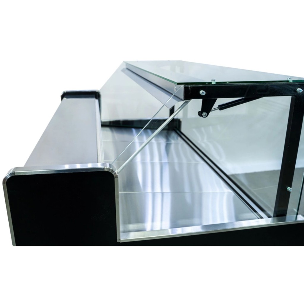 Каталог оборудования Холодильное оборудованиеВитрины холодильныеВитрины холодильные среднетемпературные от 0 до +5 °СВитрина холодильная Ангара 2 КУБ 1,0 динамика Витрина холодильная Ангара 2 КУБ 1,0 динамика Код товара: 066-467 Поделиться: WhatsAppTelegram СравнитьДобавить в КПВ избранное 0 93 928 ₽ В корзину 0 шт Под заказСамовывоз сегодня бесплатно Взять в кредит Купить в лизинг Получить консультацию в WhatsApp Описание Характеристики Отзывы 0 Витрина холодильная Ангара 2 КУБ 1,0 динамика предназначена для демонстрации и кратковременного хранения пищевых продуктов. Обеспечивает поддержание заданной температуры предварительно охлаждённых продуктов и органично вписывается в оформление любого торгового зала или открытой площадки. Особенности: Динамическое охлаждение с равномерным распределением воздушных потоков по всей камере Встроенный компрессорный холодильный агрегат Embraco Aspera или Secop (Danfoss) Надёжный микродвигатель EBM-PAPST Прямое лобовое стекло и боковые стекла толщиной 6 мм, ударопрочные Материалы: поверхность выкладки – нержавеющая сталь, подтоварники – оцинкованная сталь с полимерным покрытием, столешницы – нержавеющая сталь Два вместительных подтоварника для хранения продукции Автоматическое оттаивание испарителя с отводом талой воды в ёмкость в агрегатном отсеке Электронное управление температурой через блок Elitech ETC-974 (2 датчика, усиленное реле) Светодиодное LED-освещение – яркое, энергосберегающее, с низким тепловыделением, включается кнопкой на панели управления Автомат IEK для надёжного включения/выключения витрины Ровное расположение витрины благодаря регулируемым опорам, правильный сбор конденсата и бесшумная работа Равномерное распределение температуры по объёму камеры без образования льда и инея Хладагент – экологичный и нетоксичный R-134a, R-404a Испаритель SEST LUVE от итальянского производителя Комплектация: 2 подтоварника / электронный блок управления Температура окружающей среды: +12…+35 °C Ангара 2 КУБ 1,0 – надёжная и вместительная витрина для демонстрации и хранения предварительно охлаждённых продуктов. Отличается равномерным охлаждением, ярким LED-освещением, автоматическим оттаиванием и прочными материалами, что делает её идеальным решением для больших торговых залов и открытых площадок.Изображение товара, представленного на фото, может отличаться от его фактического вида. Показать все Габаритные размеры1020×980×1260 ммДиапазон рабочей температурыот 0 до +5 °CПлощадь выкладки0,68 м²Длина1020 ммГлубина980 ммВысота1260 ммНоминальная мощность162 ВтРазмер выкладки654 ммПолезный объем160 лХолодообеспечениеВстроенное Тип охлажденияДинамическое Тип оттайкиАвтоматическая Температура эксплуатацииот +12 до +35 °CПодсветкаЕсть ХладагентR134a, R404a Напряжение220 ВРасход электроэнергии в сутки3,9 кВт/сутГабариты в упаковке1200×1350×1200 ммОбъём (брутто)1,94 м³Вес нетто120 кгВес брутто220 кгБрендАнгараВсе витрины холодильные среднетемпературные от 0 до +5 °С 1,0 м Оставить отзыв Еще никто не оставил отзыв на этот товар Ранее просмотрено Под заказ Цена по запросу Витрина холодильная МХМ Парабель ВХСо-1,25