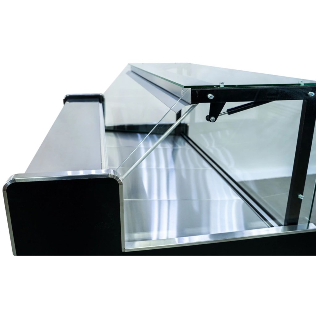Каталог оборудования Холодильное оборудованиеВитрины холодильныеВитрины холодильные среднетемпературные от 0 до +5 °СВитрина холодильная Ангара 3 КУБ 1,3 статика Витрина холодильная Ангара 3 КУБ 1,3 статика Код товара: 066-483 Поделиться: WhatsAppTelegram СравнитьДобавить в КПВ избранное 0 92 866 ₽ В корзину 0 шт Под заказСамовывоз сегодня бесплатно Взять в кредит Купить в лизинг Получить консультацию в WhatsApp Описание Характеристики Отзывы 0 Витрина холодильная Ангара 3 КУБ 1,3 статика предназначена для демонстрации и кратковременного хранения пищевых продуктов. Витрина поддерживает заданную температуру предварительно охлаждённых продуктов и гармонично вписывается в оформление торгового зала или открытой площадки. Особенности: Статическое охлаждение: естественная циркуляция воздуха без вентиляторов, поддержание температуры и свежести продуктов Встроенный компрессорный холодильный агрегат Embraco Aspera или Secop (Danfoss) Надёжный микродвигатель EBM-PAPST Ударопрочное прямое лобовое стекло и боковые стекла толщиной 6 мм Материалы: поверхность выкладки – нержавеющая сталь, подтоварники – оцинкованная сталь с полимерным покрытием, столешницы – нержавеющая сталь Вместительный подтоварник для хранения продукции Автоматическое оттаивание испарителя с отводом талой воды в ёмкость в агрегатном отсеке Электронное управление температурой через блок Elitech ETC-974 (2 датчика, усиленное реле) Равномерное распределение температуры по объёму камеры без образования льда и инея Светодиодное LED-освещение – яркое, экономичное, с низким тепловыделением; включается кнопкой на панели управления Автомат IEK для надёжного включения/выключения витрины Ровное расположение витрины благодаря регулируемым опорам, правильный сбор конденсата и бесшумная работа Хладагент – экологичный и нетоксичный R-134a, R-404a Испаритель SEST LUVE от итальянского производителя Комплектация: с подтоварником и электронным блоком управления Температура окружающей среды: +12…+35 °C Ангара 3 КУБ 1,3 – надёжная и компактная витрина для демонстрации и хранения предварительно охлаждённых продуктов. Обеспечивает равномерное охлаждение, яркое LED-освещение и автоматическое оттаивание, что делает её отличным решением для магазинов, гастрономий и открытых торговых площадок.Изображение товара, представленного на фото, может отличаться от его фактического вида. Показать все Габаритные размеры1320×1150×1300 ммДиапазон рабочей температурыот 0 до +5 °CПлощадь выкладки1,02 м²Длина1320 ммГлубина1150 ммВысота1300 ммНоминальная мощность212 ВтРазмер выкладки820 ммПолезный объем230 лХолодообеспечениеВстроенное Тип охлажденияСтатическое Тип оттайкиАвтоматическая Температура эксплуатацииот +12 до +35 °CПодсветкаЕсть ХладагентR134a, R404a Напряжение220 ВРасход электроэнергии в сутки5,1 кВт/сутГабариты в упаковке1500×1500×1200 ммОбъём (брутто)2,70 м³Вес нетто190 кгВес брутто290 кгБрендАнгараВсе витрины холодильные среднетемпературные от 0 до +5 °С 1,3 м Оставить отзыв Еще никто не оставил отзыв на этот товар Ранее просмотрено Под заказ 228 171 ₽ Стол морозильный низкотемпературный Polair TB3GN-222-G без столещницы