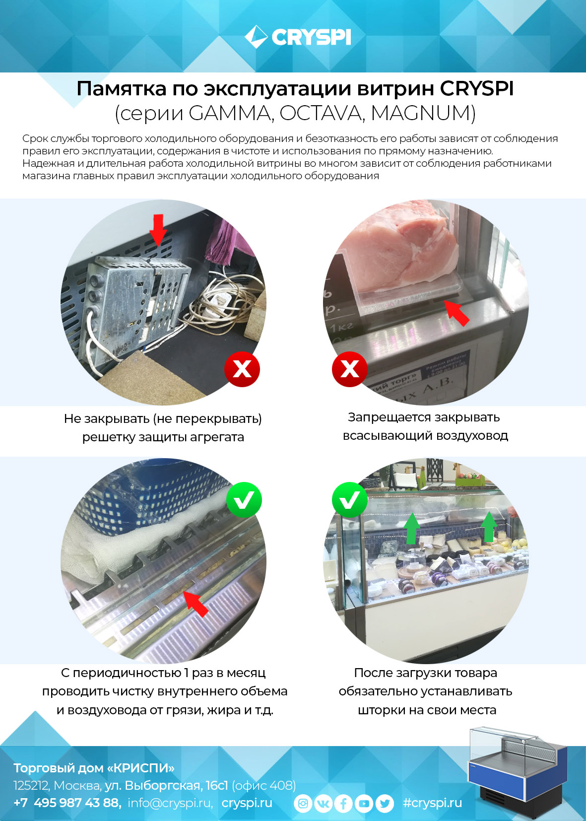 В комплект поставки входят: полка экспозиционная, ночные шторки из оргстекла и емкость для сбора талой воды.